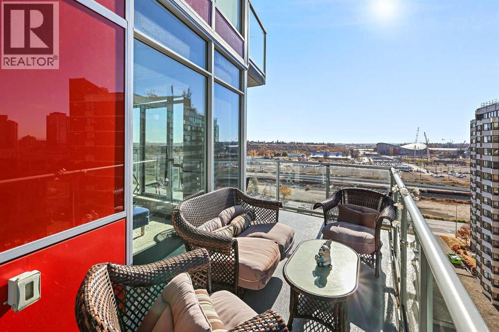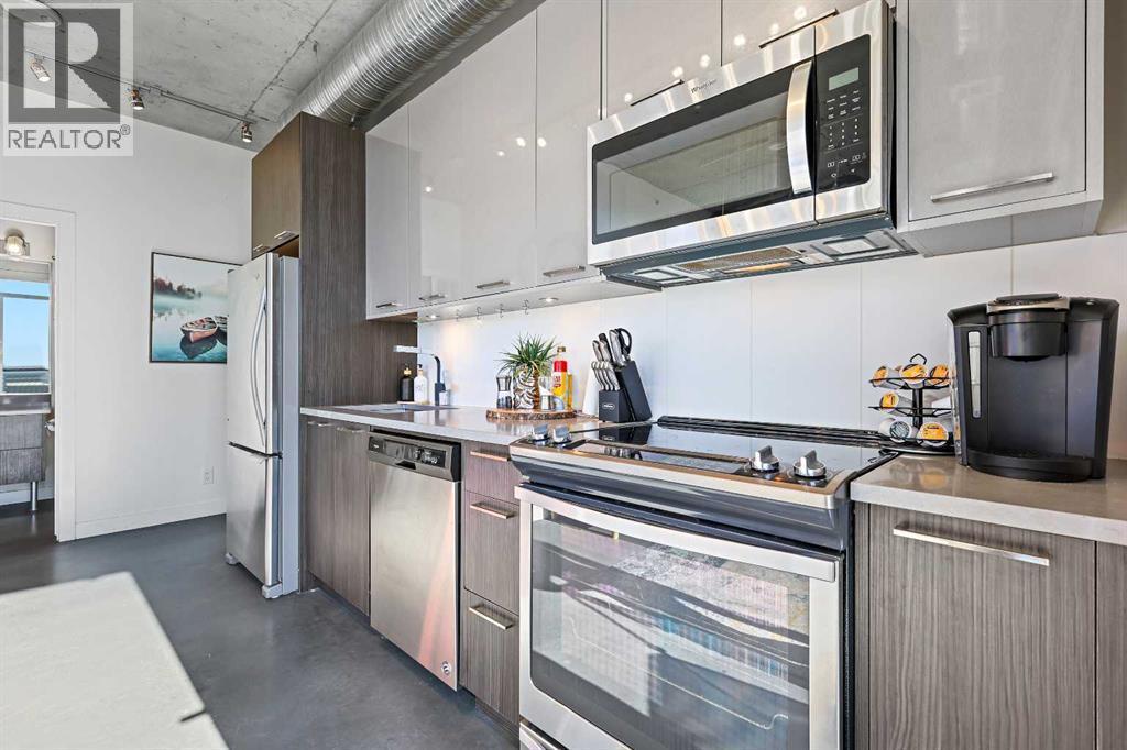 Experience modern city living at its best in this stylish 2-bedroom, 1-bath corner unit at INK by Battistella, perfectly positioned in Calgary’s vibrant East Village. Whether you’re a first-time buyer, a savvy investor, or a downsizer, this home delivers the perfect blend of bold design, intelligent functionality and unbeatable location. Perched on the 11th floor and quietly set at the end of the hall, this pet-friendly, short-term rental approved condo showcases an industrial-chic aesthetic with polished concrete floors, exposed ductwork, and soaring 9.5’ windows that fill the space with natural light. The sleek kitchen features quartz countertops, high-gloss cabinetry, and stainless-steel appliances, opening seamlessly into a bright, open living area that’s perfect for entertaining or relaxing. Two well-separated bedrooms offer versatility for a roommate setup, guest room, or home office, while the modern 4-piece bath adds a touch of everyday luxury. Step out onto your wrap-around balcony to take in breathtaking south-facing views of the Calgary Tower, Stampede Grounds, and downtown skyline—an ideal backdrop for morning coffee, evening sunsets, and Stampede fireworks. Additional perks include in-suite laundry, titled underground parking, storage locker, and impressive building amenities such as a rooftop patio, penthouse recreation room, bike storage, visitor parking, and a pet wash station. From your doorstep, enjoy easy access to the C-Train, Studio Bell, Superstore, cafés, parks, the Saddledome, and the Bow River pathways. This is your opportunity to live or invest in one of Calgary’s most dynamic and walkable urban communities. (id:6769