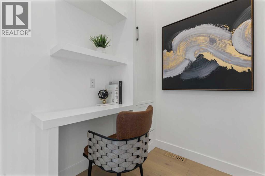 Welcome to a home where contemporary elegance meets everyday comfort in the heart of MONTGOMERY. Situated on a quiet street in this sought-after inner-city community, this stunning new build is designed with both style and function in mind, offering a thoughtfully crafted layout including a WALKOUT BASEMENT w/ COVERED PATIO SPACE, high-end finishes, and incredible natural light throughout. From the moment you step inside, the open-concept main floor makes an immediate impression. You’re greeted by a lovely glass wall in the front foyer, looking into the main floor home office with a built-in desk. The heart of the home is the designer kitchen—a perfect blend of modern aesthetics and practicality. A waterfall island anchors the space, complemented by custom cabinetry, quartz countertops, and top-tier appliances, including a gas range and French door fridge. A built-in pantry offers storage space, while a built-in coffee counter adds more cabinetry and room for small appliances. The front dining area is spacious enough for large gatherings, while the living room is designed for relaxation and entertaining, featuring a sleek gas fireplace and oversized patio doors that open to the upper deck and SOUTHWEST-FACING BACKYARD. A stylish built-in bench and hooks in the mudroom provide everyday convenience, and a chic powder room completes the main level. Upstairs, the primary suite is stylishly finished with a tray ceiling and a spacious walk-in closet with custom built-ins. The generous ensuite is a masterpiece, featuring a freestanding soaker tub, a walk-in shower with a bench, dual vanities, and elegant finishes. Two additional bedrooms each have built-in closets, while a beautifully finished main bath adds even more functionality along with the full laundry room with tile floor and built-in cabinetry. The legal 2-BED LOWER SUITE is a fully independent living space featuring a modern kitchen with full-height cabinetry, quartz countertops, and a stainless steel appliance p ackage. The thoughtful layout includes a bright living room, two spacious bedrooms with built-in closets, a stylish 4-piece bath, dedicated laundry, and a private backyard entrance. The highlight of this space, though, is the full WALKOUT PATIO – the covered space is perfect for enjoying the outdoors year-round, with the additional convenience of a fully private entrance! Located in Montgomery, this home offers an unbeatable lifestyle. Enjoy quick access to the Bow River pathways, Shouldice Park, and Winsport, perfect for outdoor enthusiasts. The community is home to fantastic local restaurants, trendy coffee shops, and boutique shopping while offering easy access to Market Mall, Foothills Hospital, the University of Calgary, and major roadways for a seamless commute. Don’t miss your chance to own this beautifully designed home in one of Calgary’s most desirable neighbourhoods! *Photos from show suite finishes may vary* (id:6769