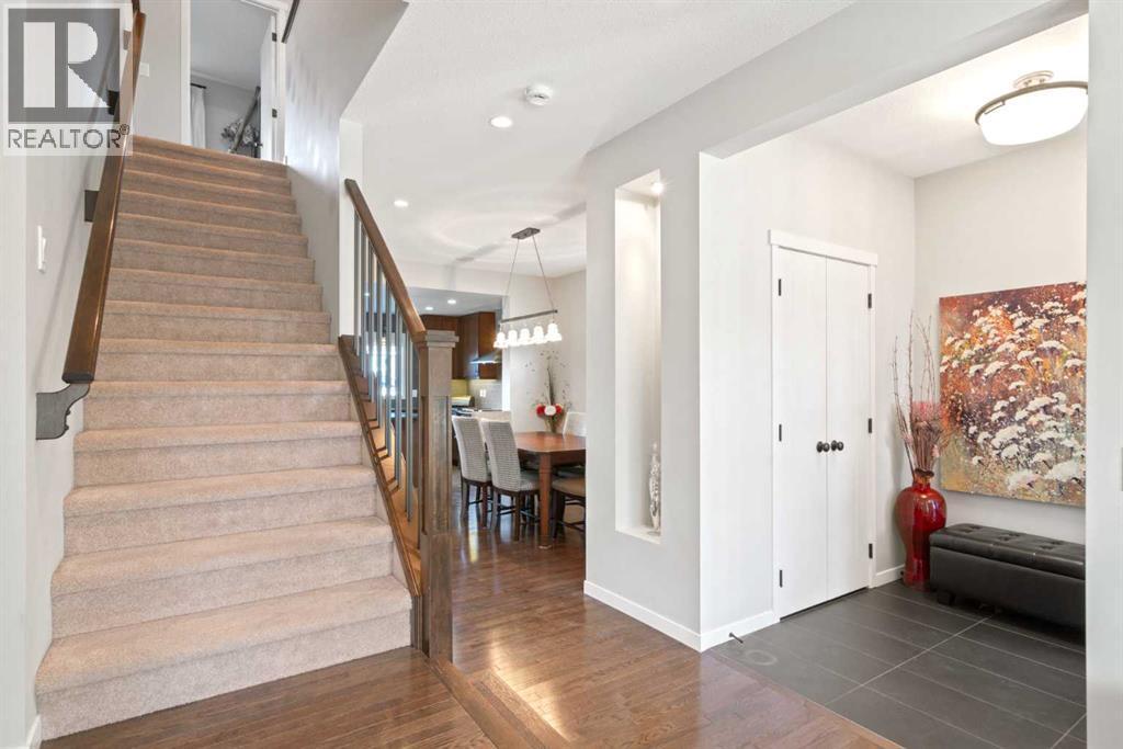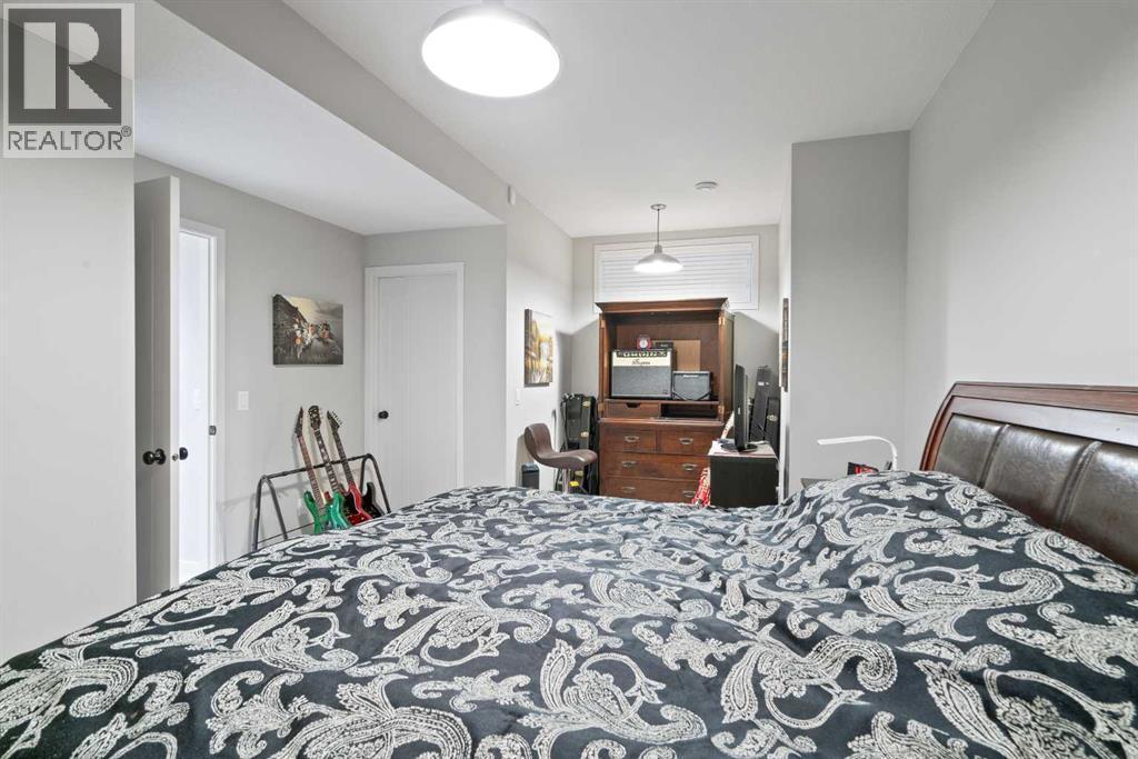 Welcome to the Ultimate Upgraded Former Ovation Showhome!Step into the award-winning Ovation-designed home — a fully developed, move-in-ready masterpiece featuring four bedrooms, three and a half bathrooms, and an oversized double garage. This exceptional property showcases every imaginable upgrade and design enhancement you’d expect from a former showhome.From the moment you enter, you’ll notice the superior craftsmanship, dark-stained oak floors, and oversized windows that flood the open-concept living space with natural light. The inviting great room centers around a beautiful fireplace and flows seamlessly into the spacious dining area and chef-inspired kitchen.The kitchen is a true showstopper, featuring dark-stained wood cabinetry, quartz countertops, and a classic subway tile backsplash that extends to the ceiling, with a lowered bulkhead for a sleek, finished look. Additional upgrades include under-cabinet and over-sink lighting with dedicated wall switches, a built-in water filtration system, and new stainless steel appliances—including a microwave, faucet, and recently replaced dishwasher.Upstairs, the luxurious primary suite features vaulted ceilings, a walk-in closet, and a five-piece ensuite with designer finishes. Two additional bedrooms, a four-piece main bathroom, and an upstairs laundry room with upper shelving, a convenient folding counter, and a new dryer complete this level.The fully finished lower level offers an impressive entertainment space with in-ceiling surround sound throughout the whole house, a three-piece bathroom, and a large bedroom that comfortably fits a king-sized bed, two oversized end tables, and more. An alcove area—currently set up as a music room—and a generous walk-in closet make this space both functional and inviting.Additional features include:Year-round comfort with a large A/C unitIn-wall vacuum systemWater and salt saver soft water systemLarge freezer inclusionOversized paved back lane leading to the 24' x 24' double garage with two rafter tire racks for extra storageWelcome to Cochrane!Nestled in the highly sought-after community of Riversong, this home offers the perfect blend of comfort, style, and location. Enjoy being within walking distance of schools, parks, athletic fields, and picturesque pathways along the Bow River.Whether you’re a growing family, a busy household, or simply looking to settle into your forever home, this stunning Ovation-designed property delivers unmatched quality, thoughtful upgrades, and timeless appeal.Make this extraordinary home yours today — book your private viewing before it’s gone! Open house november 22 10 am - 4 pm ( estate sale 10am-2pm) (id:6769