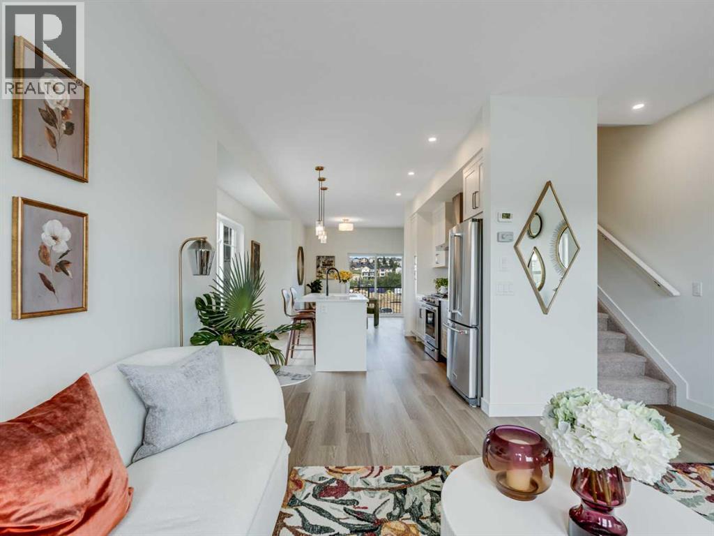 Discover a life of elegance and convenience in this stunning three-story townhome located in the heart of Westmount, Okotoks. Built by the reputable Slokker Homes, this exquisite property offers a blend of modern luxury and functional design within one of the town's most desirable, family-friendly communities. The main level welcomes you with a bright, open-concept floor plan that seamlessly connects the living and dining areas, perfect for entertaining. The gourmet kitchen is a true highlight, boasting sleek quartz countertops, a breakfast bar, and high-end stainless steel appliances. This main floor features soaring knockdown ceilings, durable vinyl plank flooring, two-tone cabinetry with soft-close drawers, SS appliances, and much more. Upstairs, you'll find the conveniently located laundry and three generous bedrooms, including the primary retreat complete with full ensuite. The home's three-story layout, featuring 2.5 baths, provides an abundance of living space and thoughtful details throughout.This property comes with an attached garage and an EXTRA TITLED parking stall. The prime Westmount location is unbeatable, offering easy access to the Westmount K-9 school and extensive community walking trails and parks. Enjoy a lifestyle of convenience with essential shopping, dining, and services just moments away at the Westmount Centre retail hub.This home is the perfect blend of style, comfort, and location, providing a great base for your life in the foothills. (id:6769