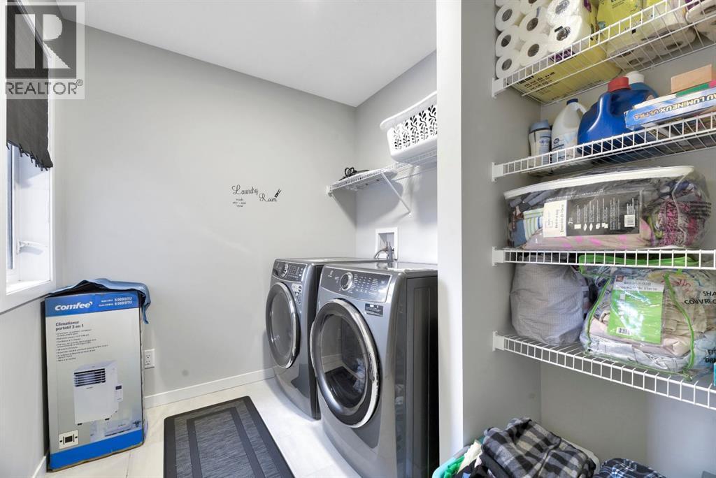 WELCOME to 15 Creekside Grove SW! This fabulous family home is just under 2000sq ft with a double front garage and is situated on a landscaped and fenced conventional lot (NOT zero lot line) with a paved back lane for extra privacy and access! Complete with an open front den/office space, convenient walk through pantry to the kitchen with tasteful and inviting interior selections and an excellent layout, all it's missing is YOU! There's lots of room to host on the main floor as the flow is perfection with loads of natural light and an electric fireplace for added ambiance! The half bath has a tiled feature wall and the kitchen has stylish picket backsplash and beautiful quartz counters. All appliances will be included (not as currently shown but they will be swapped for BLACK STAINLESS from a previous showhome {never used} and will be installed with serial numbers provided). Upstairs has a large loft style bonus room, great for play plus a spacious and convenient upper laundry room complete with washer and dryer. Primary bedroom has a 5 piece ensuite (dual sinks, soaker tub, large tile and glass shower). All bedrooms are great sizes and have WALK IN CLOSETS! Enjoy the ease and comforts of a newer home without the wait of having to finish the yard, fence or window coverings. Sirocco in Pine Creek is a quiet, elevated community, complete with a ridge overlooking the Sirocco Golf Club - very close for the golf lovers! It's laced with pathways connecting homes to four parks and a storm pond. While still close to conveniences of shopping, roadways and transit, Sirocco is built within a peaceful and natural environment. (id:6769
