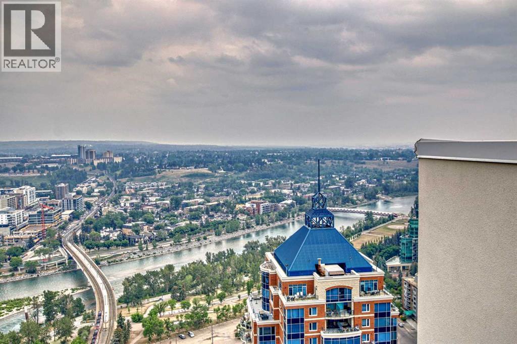 This stunning penthouse home offers captivating views of the Rocky Mountains, Bow River, and Downtown from its three balconies. With 9-foot ceilings, central air conditioning, and a fireplace in the main living area, the atmosphere is both spacious and cozy. The modern kitchen is equipped with stainless steel appliances, including a gas cooktop, allowing for gourmet cooking experiences. The ample eating bar provides a convenient and stylish space for dining. Both private bedrooms boast their own ensuites and balconies, ensuring a peaceful and personal retreat within the home. Additionally, there is an office/den area, offering a versatile space for work or relaxation. The penthouse includes two titled parking stalls, providing convenience and security. The building itself offers a range of amenities, including a concierge in the main floor lobby, a gym, an owner's lounge, a yoga studio, a meeting room, and a recreation/games room. Conveniently located near downtown amenities and the C-train, the building is also just steps away from the Bow River, offering easy access to outdoor activities and scenic walks. This penthouse home truly combines luxury, comfort, and convenience in an exceptional location. Penthouse comes with 2 covered parking. Do check the Virtual tour link included for walkthrough. (id:6769