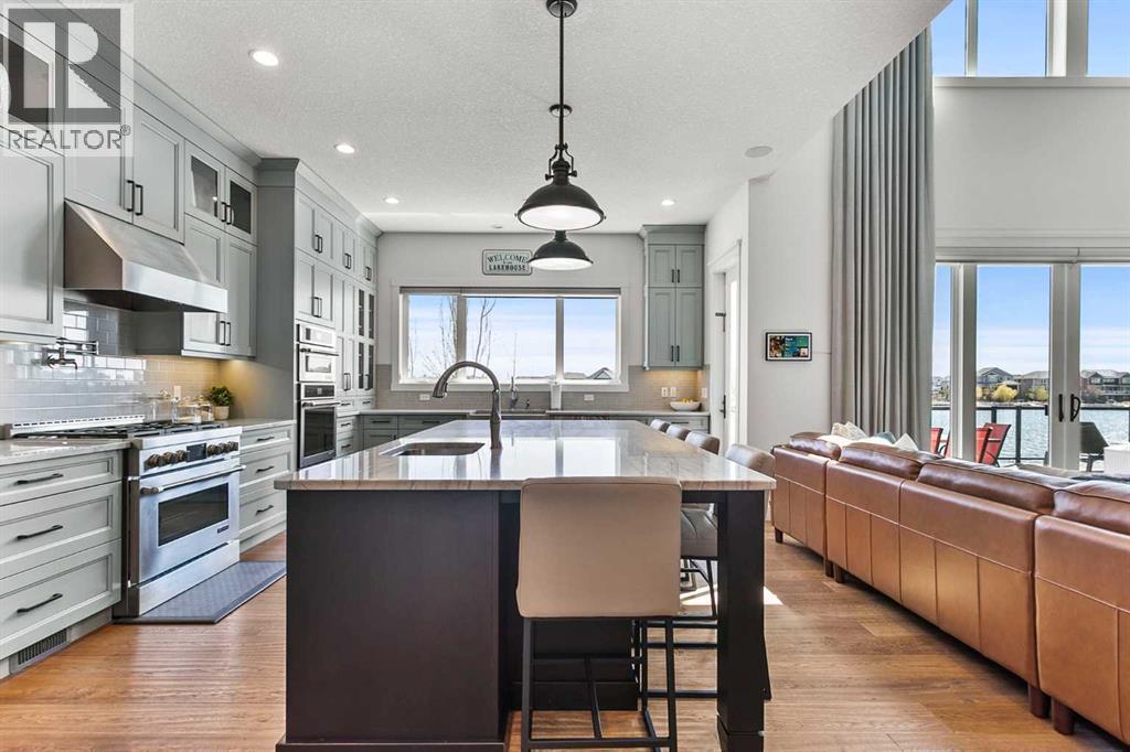 Welcome to the lakefront retreat you’ve been dreaming of—nestled on one of the LARGEST LOTS on AUBURN BAY LAKE, thisstunning residence offers over 4,800 SQ FT OF EXQUISITELY DESIGNED LIVING SPACE, a PRIVATE DOCK, and spectacular PANORAMIC VIEWS fromnearly every room. Step inside to soaring 19-FOOT CEILINGS and dramatic FLOOR-TO-CEILING WINDOWS that flood the main floor with natural lightand frame the sparkling lake like a work of art. The open-concept design effortlessly connects the living, dining, and kitchen areas—perfect for bothgrand entertaining and everyday comfort. One of the standout features of this exceptional home is the DEDICATED MEDIA ROOM, complete withTHEATRE-STYLE RECLINER SEATING, creating the ultimate spot for movie nights, game day gatherings, or immersive entertainment experiences rightat home. The chef’s kitchen is a true showpiece, featuring DAUTER STONE GRANITE COUNTERTOPS, high-end JENN-AIR APPLIANCES, a massiveisland with extra seating, a WALK-THROUGH PANTRY, and a dedicated COFFEE STATION to elevate your daily routine. A PRIVATE HOME OFFICE andan oversized TRIPLE GARAGE add practical luxury. The MAIN FLOOR PRIMARY SUITE is a serene retreat, boasting UNOBSTRUCTED LAKE VIEWS,sliding doors to the expansive deck, and a spa-inspired 5-PIECE ENSUITE with dual sinks, marble countertops, and a spacious walk-in closet.Upstairs, a sunlit SITTING AREA overlooks the main living space and leads to two generously sized bedrooms and a full bath—providing comfort andprivacy for family or guests. The FULLY DEVELOPED WALKOUT BASEMENT continues the theme of elevated living, with a large GAMES AREA, sleekKITCHENETTE, two additional bedrooms—one with a private ensuite and walk-in closet, the other with direct lake views—and a luxurious fullbathroom featuring a STEAM SHOWER. The COVERED PATIO, finished with stylish tile plank flooring, opens to a beautifully landscaped yard with aCUSTOM SHED and ample room for outdoor enjoyment. Additional highlig hts include IN-FLOOR HEATING in the basement, CENTRAL AIRCONDITIONING throughout the home, and the option to purchase the property TURNKEY AND FULLY FURNISHED, complete with high-end furnishingsand curated artwork for a seamless move-in experience. (Ask your realtor for details on the furnished option.) This is a RARE OPPORTUNITY to own apremier LAKEFRONT PROPERTY in one of Calgary’s most sought-after communities. Don’t miss your chance to experience the best of AUBURN BAYLIVING—where luxury, comfort, and lakeside beauty come together in perfect harmony. (id:6769