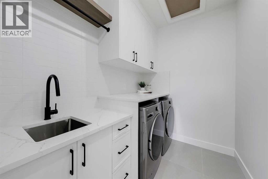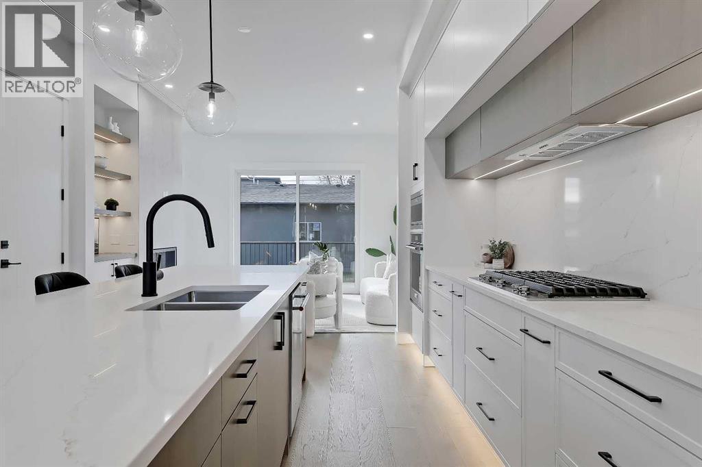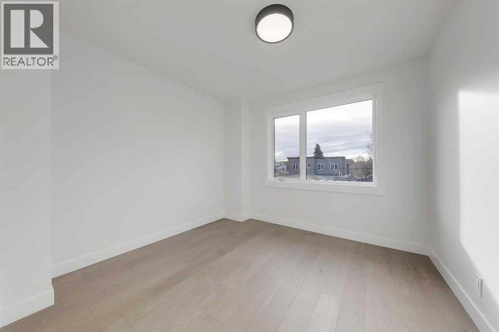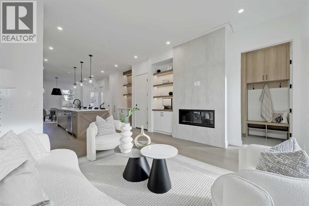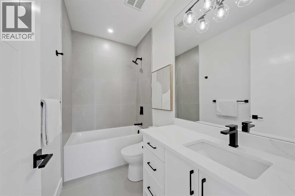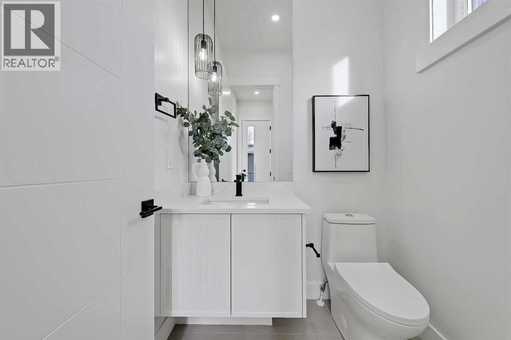 LOCATION LOCATION! Built on a quiet street only steps to West Confederation Park, this BRAND-NEW semi-detached infill in Banff Trail offers a superb floorplan with a LEGAL BASEMENT SUITE (Approved with the permit & subject to final inspection by the city). Banff Trail is well-situated in inner-city NW, with lots of outdoor recreation, schools, & shopping nearby. Confederation Park & the Charleswood Tennis Courts & Splash Park are a quick walk down the street, the City of Calgary toboggan hill is only 6-mins away, and the Confederation Park Golf Course is only 10-min down the road; a quick 9 holes after dinner can be a weeknight reality! Banff Trail School is mins away & Calgary Montessori School, Branton School, Rosemont School, and St Francis High School are all close by, with SAIT & UofC a short bike ride away. Dining options, shopping, amenities, and more are all at your fingertips, with Banff Trail, North Hill Centre, and all the businesses along Crowchild easily accessible from this inner-city location. With an amazing layout & premium finishes, you’ll discover a beautiful blend of both a stylish & functional lifestyle. This home features several upgrades, including engineered hardwood & 10-ft ceilings on the main level, soaring ceilings on the upper floor & a fully-developed basement w/ a LEGAL SUITE. The main floor boasts large primary living spaces, including a bright front dining/flex room, a large central kitchen with an oversized island w/ bar seating, ceiling-height custom cabinetry, and built-in pantry & coffee station. The large rear living room is finished w/ an inset gas fireplace w/ modern full-height surround, built-in millwork, and large windows overlooking the SOUTH back patio – perfect for family gatherings! A rear mudroom hosts a bench with hooks, with direct access to the double detached garage out back and an elegant, private powder room. Upstairs, you'll find the two secondary bedrooms w/ built-in closets, a spacious laundry room and a main 4-pc bath w/ modern vanity and a tub/shower combo w/ full-height tile surround. The primary suite features a soaring vaulted ceiling, multiple tall windows for tons of natural light, and a large walk-in closet w/ built-in storage. The 5-pc ensuite shows off with heated tile floors, glass shower w/ full-height tile, a free-standing tub, a modern vanity, dual under-mount sinks, and a separate water closet. The fully-developed LEGAL BASEMENT SUITE (approved in the development permit by the city) enjoys private access through a secure side entrance, two generous-sized bedrooms w/ built-in closets, a spacious and contemporary 4-pc bath w/ modern tile & vanity, large windows, space for a washer & dryer, plus a large living room area! The kitchen is thoughtfully arranged with quartz countertops & full-height cabinetry. Take a drive by this property and see how this house & fantastic location will suit your family perfectly! * Photos from Show Suite finishes may vary slightly* (id:6769