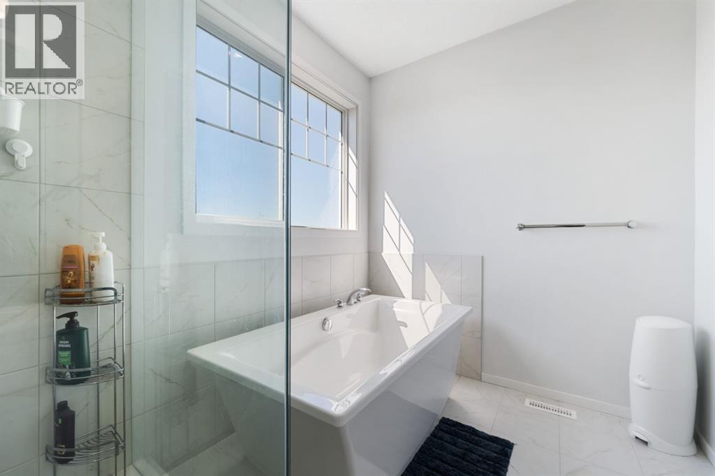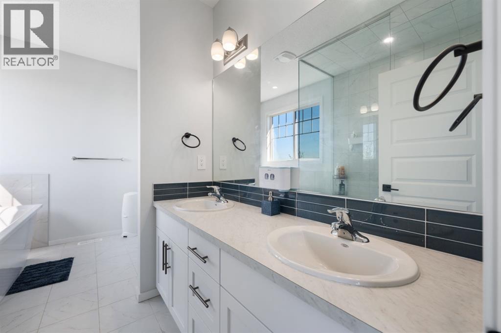 This stunning 2023 Mattamy-built residence has been meticulously maintained and loaded with custom touches. With 9-ft ceilings throughout (including the basement), the main floor feels bright and spacious, featuring 8-ft doors, upgraded hardware, and elegant railing. The chef’s kitchen boasts full-height soft-close cabinets, quartz countertops, valance lighting, a walk-in pantry, 36” cooktop and range, built-in KitchenAid & Bosch appliances, garburator, RO faucet, and an upgraded backsplash. The luxurious primary bedroom features large windows, his and her closets, and a spa-inspired 5-piece ensuite with a frameless shower, while all bathrooms include elongated soft-close toilets. Additional highlights include a 200 AMP electrical upgrade, Culligan water treatment system (softener & RO), drip humidifier, EV car charger in the garage, AC rough-in, side entry, and a basement with 9-ft ceilings plus laundry and bathroom rough-ins. Steps away from parks, convenience stores, and schools. This home also sits just a short walk from Airdrie’s newest upcoming recreation centre. This location offers the perfect blend of comfort, accessibility, and lifestyle convenience. (id:6769