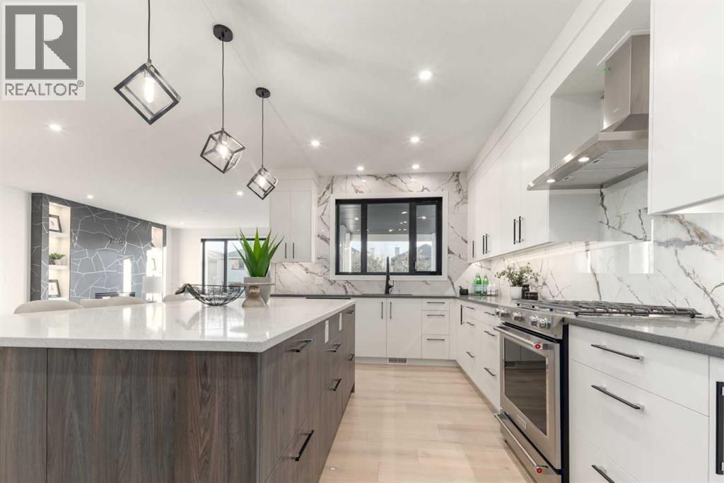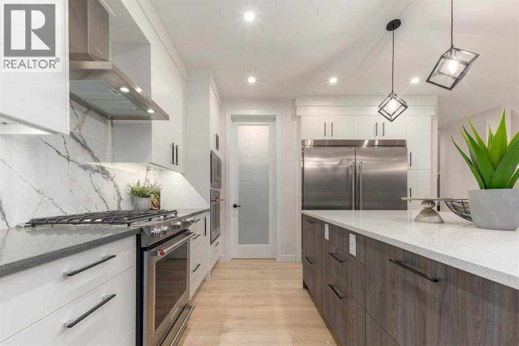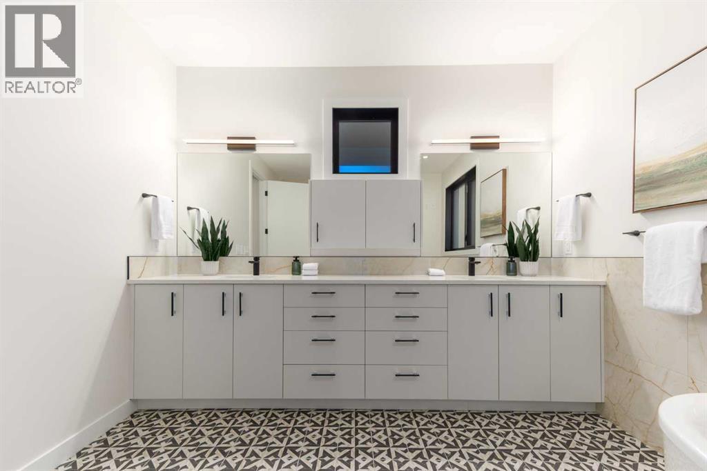 This custom built luxury family residence by Truman Homes is ideally located at the end of a quiet cul-de-sac in the prestigious community of West Springs. Thoughtfully designed for modern family living, this brand-new six-bedroom home combines timeless architecture, refined comfort, and exceptional craftsmanship throughout over 4000 SF of developed living space and three beautifully finished levels. A grand staircase welcomes you into the open foyer, where Southwest light fills the living areas, creating warmth and elegance with engineered hardwood throughout the main and upper levels. The chef-inspired kitchen showcases a large granite island, a 5-burner dual-fuel gas range with a second built-in oven, under-cabinet lighting, and a walk-in pantry with abundant space for spices, small appliances, and culinary essentials. Elegant cabinetry, deep island drawers, and intelligent corner design add both beauty and function. The open concept living and dining areas are centered around a gas fireplace with built-ins, while a built-in bar with wine fridge enhances entertaining. From the main level, walk out to a South-facing deck with a hot tub connection, overlooking a large backyard ready for your dream landscaping or family retreat. A two-desk office, tucked away from the main living areas, offers privacy and natural light, with a powder room conveniently located near the kitchen. The mudroom, connecting directly to the attached four-car garage, provides built-in storage for seasonal and everyday items. Upstairs, the primary suite is a serene retreat featuring heated floors in the ensuite, dual custom vanity, a glass-framed shower, a large walk-in closet, and a private patio for morning coffee or evening relaxation while you soak in mountain views. The upper level includes four bedrooms, ideal for growing families, and three full bathrooms, each with heated floors, plus a bright laundry room with a window, sink, washer, dryer, and ample storage. The fully developed lowe r-level features roughed-in in-floor radiant heat, two bedrooms, a four-piece bathroom, a theatre room, flex space for fitness, and a second kitchen area with a fridge and dishwasher, perfect for guests or multi-generational living. The oversized four-car attached garage impresses with soaring ceiling heights, roughed in radiant in-floor heating, floor drains, and two EV chargers. Mechanical highlights include two high-efficiency furnaces zoned controlled, rough-in for air conditioning, CAD-6 wiring, zoned speakers roughed-in throughout the home including the garage, a radon mitigation system, and roughed-in security. Located just 20 minutes from downtown Calgary, West Springs offers top restaurants, cafés, fitness facilities, boutique shopping, and excellent schools, all within walking distance. This home was thoughtfully designed and custom built with too many upgrades to name. Make sure to review the property brochure to get a full list of the upgrades that went into this superb family home! (id:6769