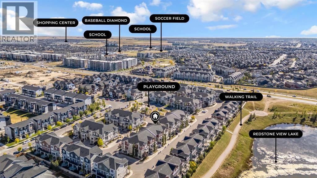 Welcome to this beautifully maintained CORNER unit offering exceptional space and convenience in Redstone. Featuring 4 spacious bedrooms and 2.5 bathrooms, this home is perfect for families or anyone seeking extra room to grow. The bright, open layout is FRESHLY PAINTED and PROFESSIONALLY CLEANED, providing a true move-in ready experience. The main floor consists of a large foyer with access to the garage and bedroom. The second floor features a bright, open layout living area featuring a beautiful kitchen with upgraded stainless steel appliances and island. The open layout of the kitchen, sizeable centre island, dining room and living room make it perfect for entertaining. The huge patio area easily fits a small patio set to sit and relax with a natural gas line hook up ready for your bbq. The upper floor features a huge master bedroom with a VAULTED CEILINGS, walk-in closet and attached ensuite. There are 2 more spacious bedrooms and a full bathroom on the top floor. Enjoy the convenience of an attached single garage plus full driveway, giving you ample parking and storage. With its corner location, this home also benefits from extra windows and natural light throughout. Located in a very quiet location across a park in a family oriented community of Redstone! This home is close to all amenities like bus stop, stores, mall, airport, bus stop, groceries and easy access to Stoney Trail and Deerfoot. Steps away from a new shopping plaza opening on Redstone Blvd! (id:6769