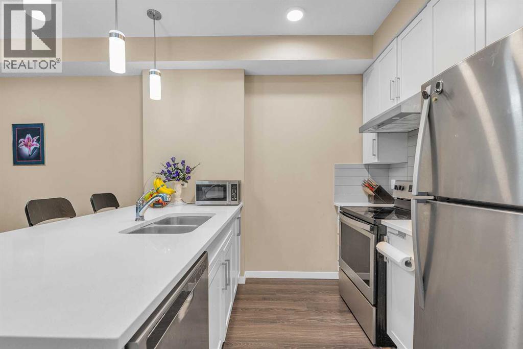 Welcome to Sandgate at Mahogany Lake! Located in one of Calgary’s most vibrant and sought-after lake communities, this beautifully maintained unit offers the perfect blend of style and functionality. With over 500 sq ft of thoughtfully designed living space, this 1-bedroom, 1-bathroom condo includes a titled parking stall for your convenience. Step inside to discover laminate flooring throughout and a bright, open-concept layout. The contemporary kitchen features sleek white cabinetry, quartz countertops, stainless steel appliances, and a central island with a breakfast bar, ideal for both everyday living and entertaining. A door from the spacious living leads to a generous outdoor patio, perfect for enjoying warm summer days. The well-sized bedroom features a large walk-through closet that connects to a 4-piece ensuite, and in-suite laundry adds extra convenience. Sandgate offers fantastic amenities including a full fitness centre, and as a resident of Mahogany, you’ll enjoy year-round access to the lake -perfect for swimming, skating, fishing, or simply relaxing by the water. Ideally situated close to schools, parks, playgrounds, shopping, dining, and public transit, this home is perfect for first-time buyers, downsizers, or investors alike. Don’t miss this opportunity to enjoy lakeside living in one of Calgary’s premier neighbourhoods - schedule your private showing today! (id:6769