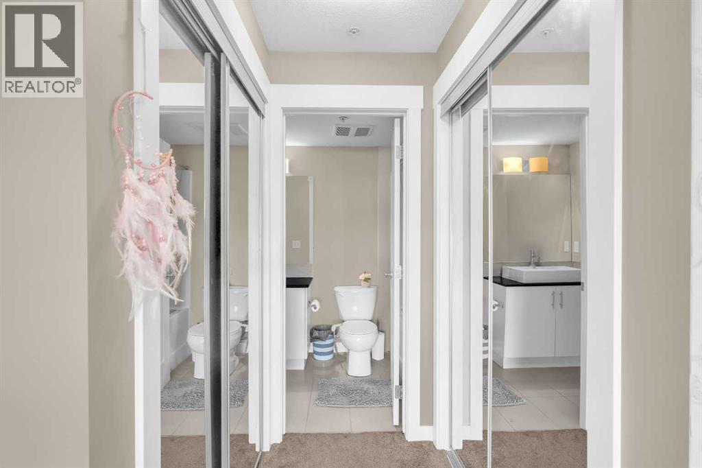Nestled in the well-established community of Skyview Ranch, this spacious ground-level corner condo offers comfort, convenience, and contemporary living. Surrounded by parks, playgrounds, and schools, it’s an excellent choice for families, first-time buyers, or anyone looking for a peaceful place to call home. Step into a secure building with key fob and buzzer access and be welcomed by a spacious foyer with a convenient closet for storage. The open-concept layout includes an upgraded kitchen with stainless steel appliances, granite countertops, and full-height cabinetry. The dining area flows effortlessly into the bright and inviting living room, filled with natural light from large windows and a sliding glass door that opens to your private patio — perfect for relaxing or entertaining. The two bedrooms are thoughtfully placed on opposite sides of the unit for added privacy. The primary bedroom mirrored closets and a 4-piece ensuite bathroom. The second bedroom is generously sized and conveniently located next to the main 4-piece bathroom featuring a tub/shower combo. Enjoy the practicality of in-suite laundry discreetly tucked behind closed doors, along with modern light fixtures that add a stylish touch throughout the main living space.This unit also comes with one titled underground heated parking stall, keeping your vehicle protected year-round. With easy access to Stoney Trail, Deerfoot Trail, the airport, and all nearby amenities, this condo offers an ideal blend of modern comfort and everyday convenience. Book your showing today and see why this Skyview Ranch condo is a fantastic place to call home! (id:6769