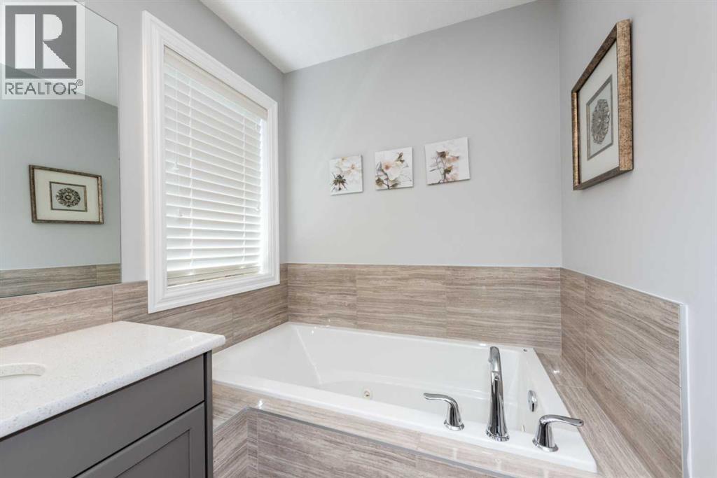 Welcome to this beautifully appointed 5-bedroom home in the sought-after Estates of Auburn Bay, where upscale living meets lakeside leisure. With PRIVATE LAKE ACCESS just steps away, this property offers an unmatched lifestyle in one of Calgary’s premier lake communities. Step inside to discover a thoughtfully designed floorplan featuring a spacious front foyer, a large open-concept main level, and a striking double-sided gas fireplace that adds warmth and ambiance to both the great room and adjacent living spaces. At the heart of the home lies a chef-inspired kitchen with custom grey cabinetry, gleaming white quartz countertops, stainless steel appliances (including a gas cooktop), a mosaic glass tile backsplash, and a massive kitchen island perfect for casual dining and entertaining. Upstairs, you'll find four spacious bedrooms, including a serene primary retreat with a walk-in closet and a luxurious 5-piece ensuite. The upper level also features a bright and versatile bonus room, a stylishly designed 5-piece bathroom with a double vanity for the kids, and a large laundry room complete with quartz countertops and plenty of space for folding and organizing — a dream for busy households. The partially finished basement includes a fifth bedroom and awaits your personal touch, offering endless possibilities for customization — from a home theatre to a gym or guest suite. Outdoors, enjoy a fully fenced and landscaped yard with mature trees and shrubs, a spacious deck, private hot tub, and pergola — ideal for year-round entertaining. A private pathway leads to your dock, granting year-round access to swimming, kayaking, paddleboarding, and skating. Ideally located within walking distance to ponds, pathways, parks, and playgrounds, this is a rare opportunity to own in one of Auburn Bay’s most coveted enclaves. (id:6769