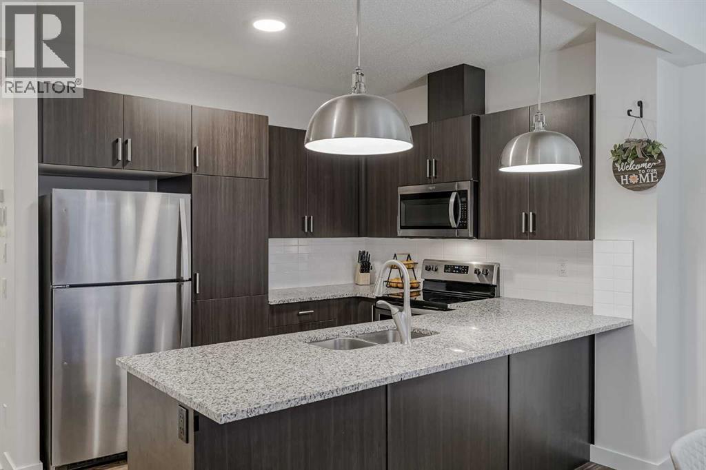 This beautifully designed townhome stands out from the rest — offering true main-floor living where your kitchen, dining, and living areas are all on the same level you enter from the garage. No stairs to climb just to reach your main living space! Step inside to discover an inviting open-concept layout featuring 9-foot ceilings, stylish lighting, and a seamless blend of tile and laminate flooring. The modern kitchen shines with stainless steel appliances, granite countertops, subway tile backsplash, and a convenient breakfast bar — perfect for morning coffee or casual dining. The adjoining living and dining areas flow effortlessly to a sunny, south-facing patio, ideal for relaxing or entertaining. A guest powder room and direct garage access complete this thoughtfully designed main level. Upstairs, you’ll find two exceptionally spacious bedrooms, each featuring its own private ensuite bathroom and walk-in closet — perfect for guests, roommates, or a dual-owner setup. The laundry area is conveniently located on this level for everyday ease. The fully finished basement adds even more living space with a large recreation or family room — perfect for movie nights, a home gym, or office setup. With quick access to Stoney Trail, Macleod Trail, and nearby communities like Walden, Legacy, and Shawnessy, you’re just minutes from shopping, dining, schools, and all major amenities. This is one of the few townhomes that truly offers main-floor living — blending modern comfort, functionality, and a low-maintenance lifestyle all in one. (id:6769