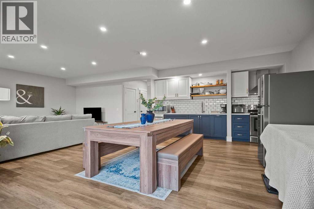 This stunning 2-story walkout home, offering over 3000 sq. ft. living space, is fully finished and features 4 bedrooms and 4 bathrooms with a second full kitchen in the walkout basement! Highlights of this exceptional home include: in-slab in-floor heat, insulated heated double garage with extra wide driveway, central air conditioning, hardie board siding, vinyl deck, upgraded Kohler plumbing appliances, custom cabinets/built-ins with real wood & dovetailed drawers, granite counters throughout, imported Italian tiles, 9 ft ceilings - main floor & basement, large patio, hardwood flooring, stunning vinyl deck overlooking the pond, gas stove (also 220V behind), central vacuum, water softener, and the list goes on! The main floor showcases an open concept design with 9-foot ceilings, custom cabinetry, and high-end stainless steel appliances, including a spacious island that overlooks the cozy living room with a gas fireplace and beautiful wood/glass cabinetry. Abundant windows fill the space with natural light, and you can step out onto a large deck that offers breathtaking views of the pond and vibrant fall colors. Upstairs, relax in the central bonus room or the master bedroom & its spa-like 5-pc en-suite. The spacious 2nd & 3rd bedrooms share the upgraded family bathroom. The walkout basement features a full kitchen, in-floor heating, a family/game room with a second kitchen, second laundry room, a fourth bedroom, and full bath, along with access to a lower walkout deck and a fenced backyard. Ideally located within walking distance to schools, Costco, and scenic pathways. This property is situated in one of Okotoks' most desirable neighborhoods. It's truly an ideal home for a growing family! (id:6769