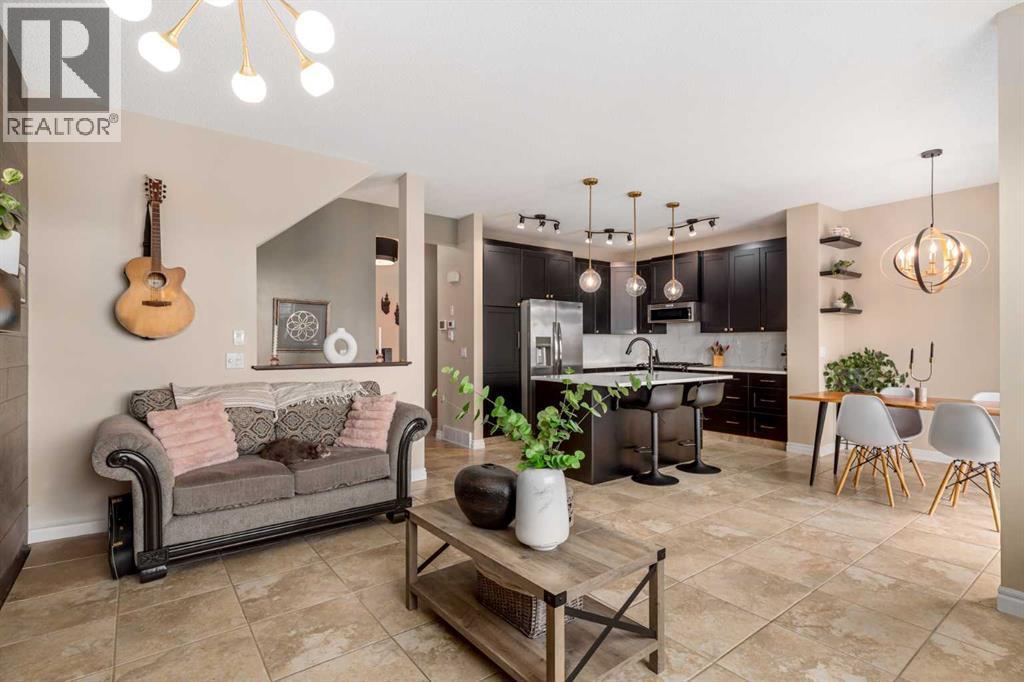 PANORAMIC MOUNTAIN VIEWS/A/C/FULLY DEVELOPED/WALKOUT BASEMENT/NO REAR NEIGHBOURS/BACKING ONTO TRAIL/NEW KITCHEN IN 2022 - Wake up every morning to breathtaking, unobstructed mountain views in this beautifully designed fully developed walkout home offering nearly 2,500 sq.ft. of well-designed living space that’s perfect for families and entertaining. Positioned with no neighbours behind and backing directly onto a peaceful walking trail, this home offers both privacy and incredible scenery. With mature trees, shrubs, and a bright south-facing backyard, it’s the perfect setting to enjoy sunshine and views all year long.Inside, you’re greeted by a bright open-concept main floor thoughtfully designed to maximize natural light and capture those stunning mountain views from every angle. The spacious living area features a cozy stone gas fireplace that creates the perfect focal point for family gatherings or quiet evenings at home. The renovated 2022 kitchen is both stylish and functional, featuring white quartz countertops, new cabinetry, and a seamless flow into the dining area, ideal for entertaining. Step through the patio doors to your large elevated deck with glass railings and a gas BBQ line, where you can unwind and take in sunsets over the Rockies.Upstairs, you’ll find a versatile bonus room with a built-in Murphy bed, perfect as a guest space, theatre, home office, or play area. The primary retreat is a true highlight, offering panoramic mountain views, a 5-piece ensuite with a jetted tub, and a spacious walk-in closet. Two additional bedrooms and a full bathroom complete the upper level, providing plenty of space for family or guests.The fully developed walkout basement expands your living space with a large open rec room, an electric fireplace, and a full bathroom, providing flexibility for movie nights, workouts, or a guest suite setup. Walk directly out to your private landscaped backyard with gate access to the trail, making it easy to enjoy evening walks or morning runs right from your door.The double attached garage is a showstopper in itself, beautifully finished with epoxy flooring and built-in cabinetry, creating the ultimate workshop, hobby space, or “man cave.”This home’s location is second to none, within walking distance to parks, green spaces and close to restaurants, gas stations, and everyday conveniences. With quick access to Highway 1A, weekend getaways to the mountains or Ghost Lake are just minutes away.Bright, inviting, and move-in ready, this home truly checks every box with incredible mountain views, a functional floor plan, a fully developed walkout basement, and a sun-drenched south backyard. Don’t miss your chance to experience it in person. Schedule your private showing today because this one won’t last long! (id:6769