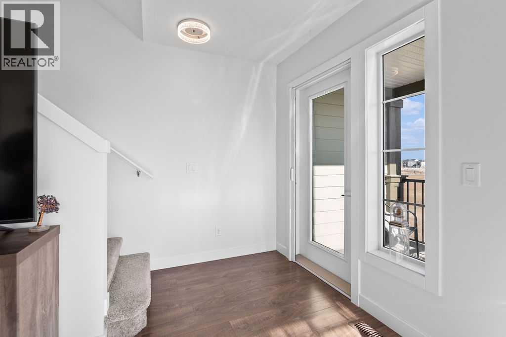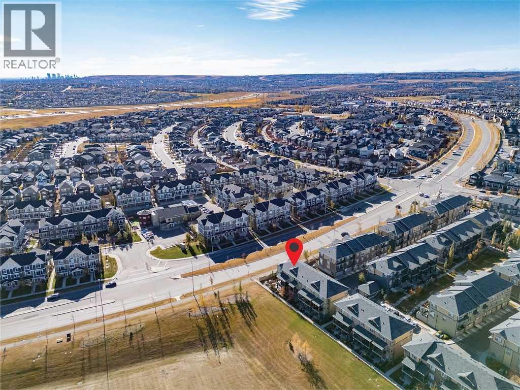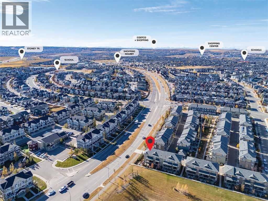 Discover the perfect blend of style, comfort, and luxury in this spectacular end-unit townhome perfectly positioned to capture beautiful green space views in the highly desirable community of Evanston. With 3 spacious bedrooms plus a versatile den, 2.5 bathrooms, a double attached garage, and high-end designer upgrades throughout, this home offers the ideal combination of elegance and practicality — all in impeccable condition. From the moment you arrive, you’ll be greeted by stunning curb appeal and a meticulously landscaped, enclosed front patio — a serene outdoor space that sets the tone for what’s inside. Step through the front door into a flexible main-level den, perfect for a home office, creative space, or playroom. This level also provides direct access to the double attached garage, ensuring comfort and convenience year-round. The main living area is open, bright, and beautifully designed to make the most of every inch. Expansive windows flood the space with natural light, highlighting the modern finishes and creating an inviting atmosphere that’s perfect for relaxing or entertaining. The living room flows seamlessly into a dining area and a chef-inspired kitchen that will take your breath away. The gourmet kitchen features custom full-height cabinetry, quartz countertops, a designer tile backsplash, stainless steel appliances, a corner pantry, and a large central island that’s perfect for hosting friends or preparing meals for your family. Whether you’re cooking a quick breakfast or entertaining guests, this kitchen delivers in both function and style. Off the living room, step onto your private balcony overlooking the lush green space — a peaceful retreat with no homes directly in front, offering a rare sense of privacy and tranquility. Upstairs, the primary suite is a true sanctuary, complete with a walk-in closet and a luxurious ensuite bathroom featuring contemporary fixtures and finishes. Two additional bedrooms provide plenty of space for family memb ers or guests, and a full main bathroom plus convenient upper-level laundry make daily living effortless. This home is loaded with premium upgrades, including central air conditioning, luxury vinyl plank flooring, modern lighting fixtures, and custom window coverings. Every detail has been thoughtfully curated to create a sophisticated, move-in-ready home that feels both stylish and comfortable. Evanston is one of Calgary’s most vibrant and family-friendly communities, known for its excellent schools, scenic parks, walking paths, and an abundance of nearby amenities. You’ll be just minutes from shopping centers, restaurants, coffee shops, and fitness facilities, with easy access to Stoney Trail and 14th Street NW for quick commutes anywhere in the city. (id:6769