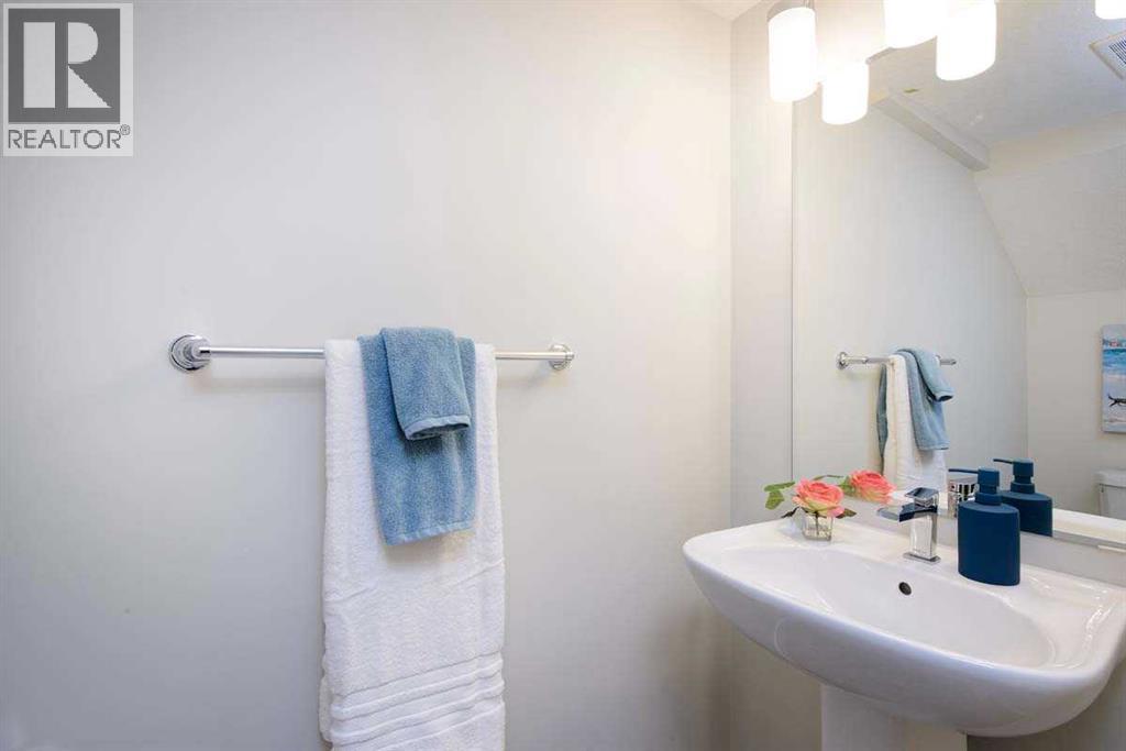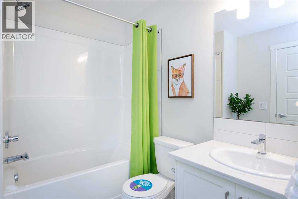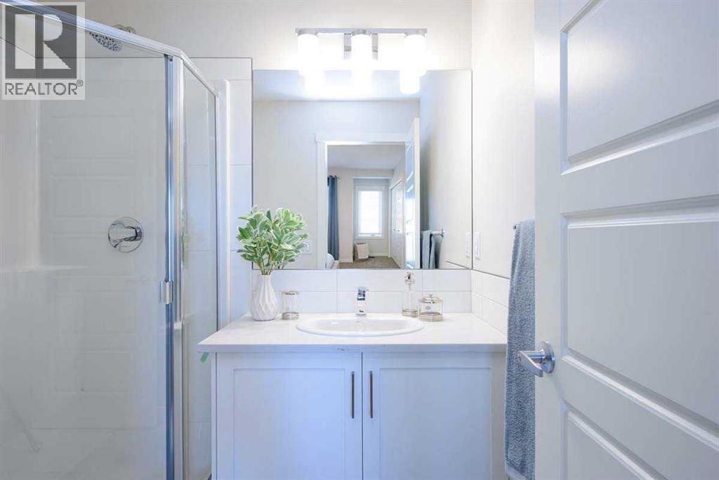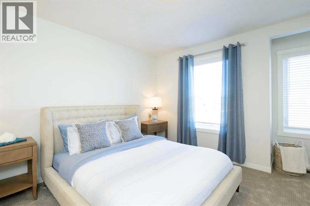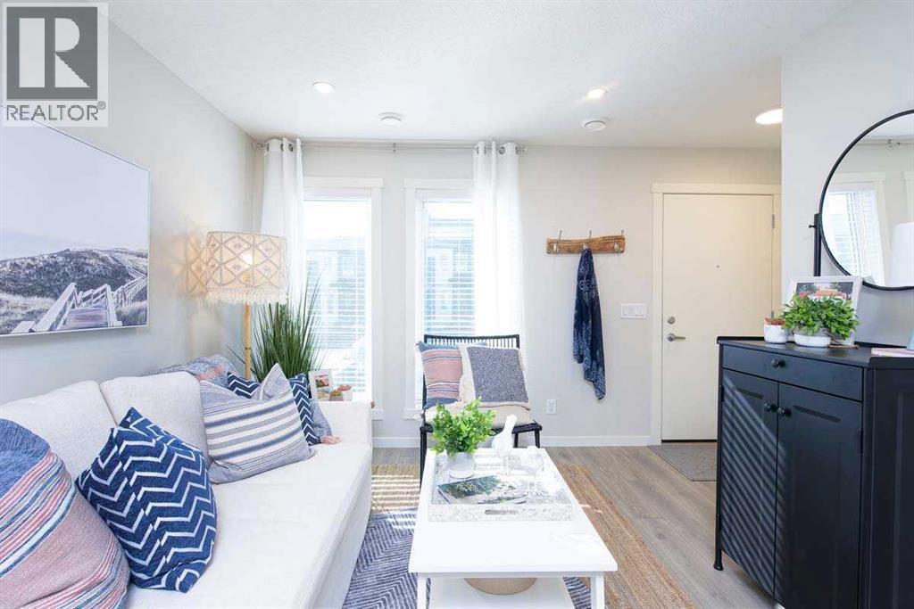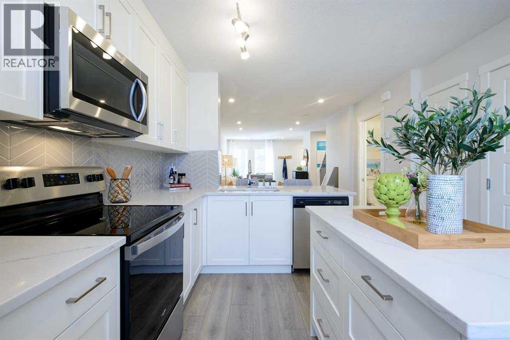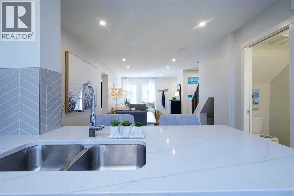 Modern Comfort in Calgary’s Premier Lake Community - Welcome to this stylish two-storey townhome in the heart of Calgary’s sought-after lake community. Thoughtfully designed for both everyday living and entertaining, the open-concept main floor seamlessly connects the kitchen, dining, and living areas. The modern kitchen has stainless steel appliances, an island with quartz countertops, and plenty of storage. Upstairs, you’ll find two spacious bedrooms, each with its own ensuite and generous closet space, offering both privacy and convenience. A dedicated upper-floor laundry area adds to the home's everyday functionality. Built to exceed today’s standards, this ZEN home offers 40% more insulation than required by code, resulting in a quieter, warmer, and more energy-efficient living experience. Triple-pane, double-coated windows, a high-efficiency HRV (Fresh Air System), and extra airtight construction improve indoor air quality, durability, and resiliency. Photos are representative. (id:6769
