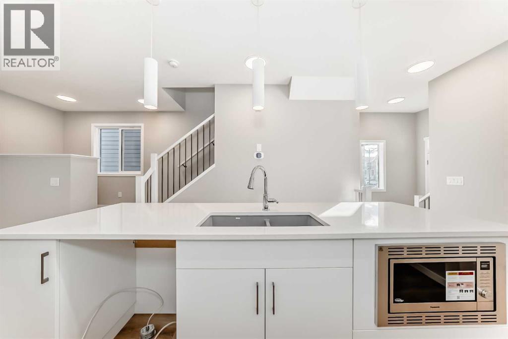Welcome to this brand-new “Rayn” in Mahogany—a home that blends stylish family living with future flexibility. A separate side entrance offers the option for a private lower-level development or suite down the road (A secondary suite would be subject to approval and permitting by the city/municipality), while the main floor is designed for everyday ease with warm, natural luxury vinyl plank and clean, modern finishes throughout. At the heart of the home, the central kitchen shines with timeless white cabinetry raised to the bulkhead, bright white quartz countertops, and a white marble-style backsplash that wraps the stand-alone chimney hood fan for a seamless, upscale look. Stainless steel appliances and an oversized island make meal prep and casual entertaining effortless. The dining area sits perfectly between kitchen and living—roomy enough for an extended table—while the rear living room enjoys floor-to-ceiling windows and a smart back entry with a 2-piece bath. Just off the kitchen, a versatile flex room adapts to your life (home office, play space, fitness corner), and a raised homework/tech nook overlooks the main floor—organized, functional, and surprisingly fun. Upstairs, a cozy bonus room anchors the level for movie nights or quiet reading. The primary retreat is tucked at the back with an oversized window, a generous walk-in closet, and a chic 4-piece ensuite featuring dual sinks and a full-size shower—finishes you’d expect in a much larger home. Two additional bedrooms are well-proportioned, and the upstairs laundry and linen storage keep day-to-day living simple and tidy. Live the four-season lake lifestyle Mahogany is known for. Centered around Calgary’s largest freshwater lake and a 21-acre beachfront, the community offers private resident beaches, swimming, skating, and year-round events. Stroll the scenic wetlands and extensive pathway network, or head to the Urban Village for coffee shops, restaurants, services, and everyday conveniences. Families appreciate nearby schools and playgrounds; commuters value quick access to Stoney Trail, Deerfoot Trail, and the Seton District’s amenities (South Health Campus, shops, dining, and recreation). Mahogany pairs resort-style living with real-world convenience—making home feel like a getaway, every day. (id:6769
