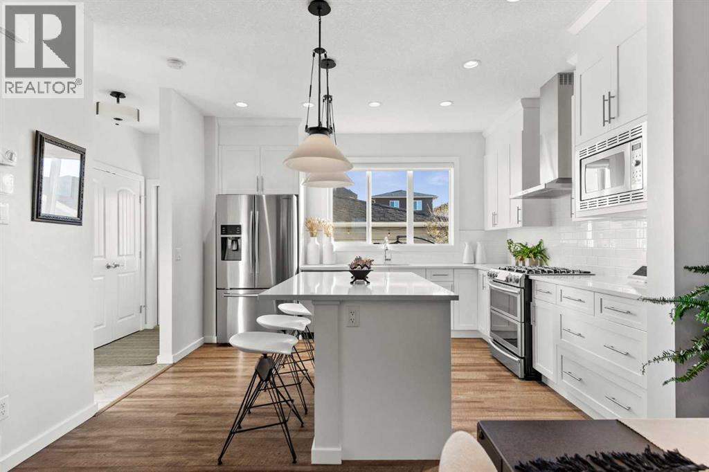 Welcome to this stunning 3 bedroom, 2.5 bathroom home in the desirable west Cochrane community of Heritage Hills. Combining modern comfort with timeless charm, this property offers the perfect balance of style, functionality, and location. From the inviting front porch to the thoughtfully designed interior, every detail has been carefully considered. The open concept main floor is filled with natural light, creating a warm and welcoming atmosphere. The spacious living room flows seamlessly into the dining area and modern kitchen complete with sleek stainless steel appliances including a gas range, ample cabinetry, and plenty of counter space — perfect for family meals or entertaining guests. Upstairs, you’ll find three generous bedrooms, including a primary suite featuring a walk-in closet and private ensuite bathroom. Two additional bedrooms, full laundry room and a full bath provide plenty of room for family or guests. The basement offers endless potential to customize the space to suit your needs — whether it’s a recreation room, home office, gym or additional living area. Outdoors, enjoy a low maintenance landscaped rear yard with a patio ideal for relaxing or hosting summer barbecues. The oversized detached double garage provides ample parking and storage space, and features a secondary overhead garage door offering convenient backyard access. Located just steps from a playground and minutes from amenities and scenic walking trails, with exceptional access to the majestic Rocky Mountains, this home perfectly blends convenience and community. Experience the best of Cochrane living in this exceptional Heritage Hills home. (id:6769