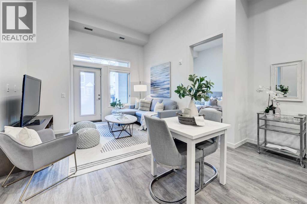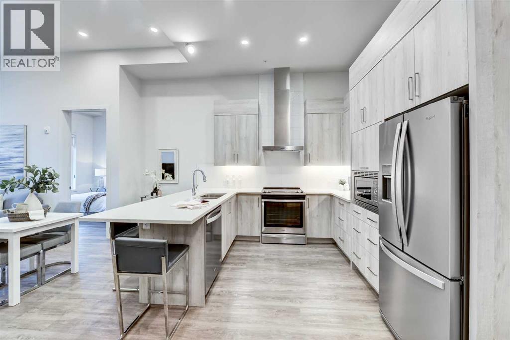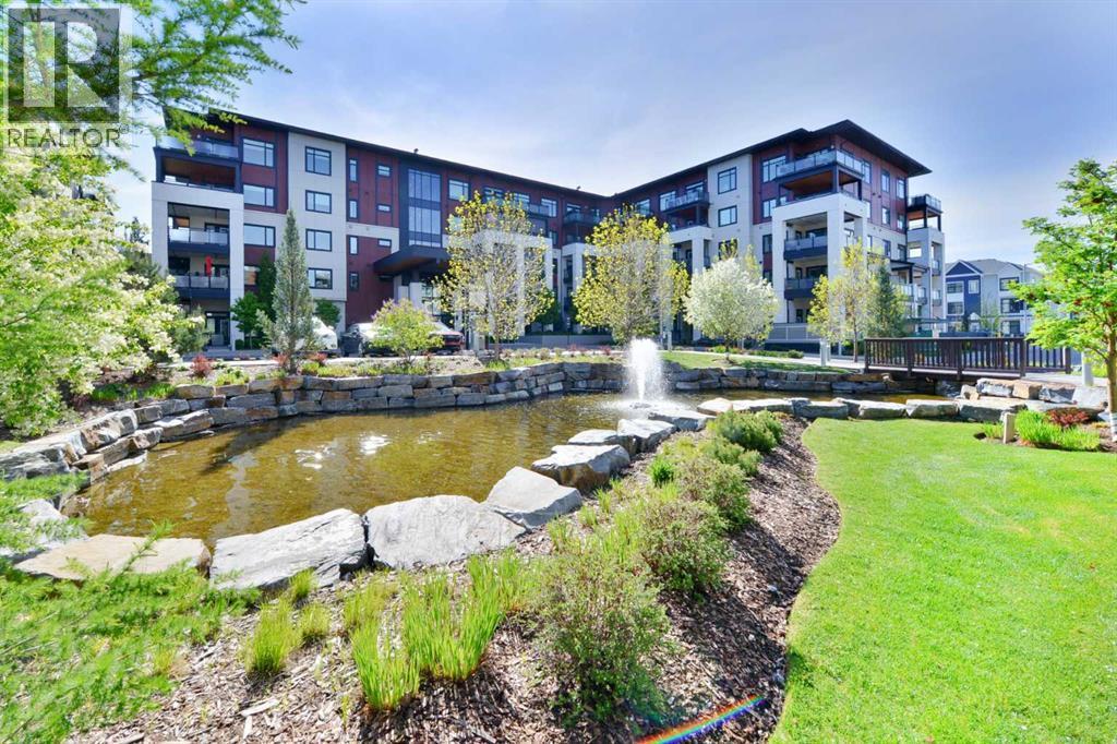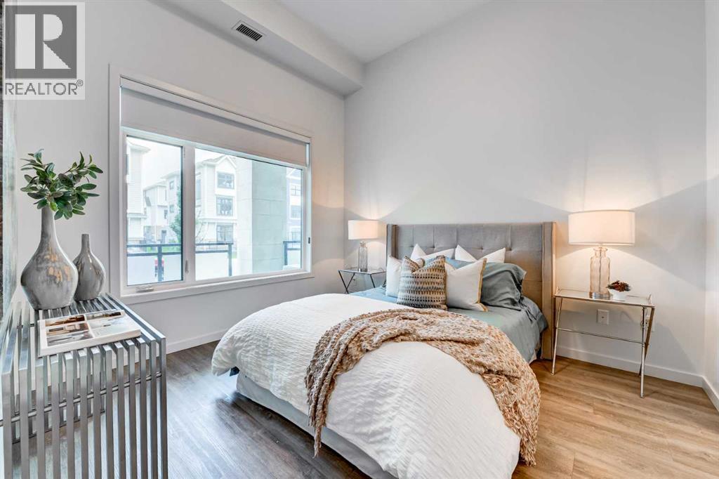 Discover the ultimate resort-style living in Westman Village, Calgary’s most sought-after lakeside community. Nestled in the exclusive 55+ building, this south-facing, nearly 1,000 sq. ft. ground floor home offers 2 bedrooms, 2 bathrooms, 2 TITLED parking stalls, soaring 12-foot ceilings, and a private exterior door for easy access for visitors or dog walks. This home offers an elevated lifestyle for those looking to downsize without compromise. The unit and building are wheelchair accessible with wide hallways & doorways. From the moment you enter this sun-soaked home, the soaring ceilings and bright, modern finishes create a warm and inviting atmosphere. The open-concept kitchen is beautifully designed with sleek cabinetry, quartz countertops, and high-end finishes, making it as functional as it is elegant. The spacious living and dining areas are ideal for entertaining or quiet evenings at home. The spacious primary bedroom can easily fit a king-sized bed. The large primary ensuite features a large walk-in shower and modern finishes, and the double closets offer ample storage. The second bedroom and bathroom are on the opposite side of the unit and provide the option for a den, media room or office space. A true standout feature of this home is the massive outdoor patio that offers 232 feet of additional living space and direct access for your visitors. For added convenience, this unit includes two storage spaces, one in the parking stall and a 6x6 storage unit with easy elevator access. The 40,000 sq. ft. Village Centre is connected via a +15, 2nd-floor indoor walkway with a party/social room, a billiards room, a fully equipped wood working shop, an art room, a golf simulator, a theatre, a fitness center, and more. The Village Centre includes Concierge services (7am to 11pm) and 24/7 security. If you're looking for a welcoming, low-maintenance, & upscale place to call home, this is your chance to experience the best in 55+ living! (id:6769