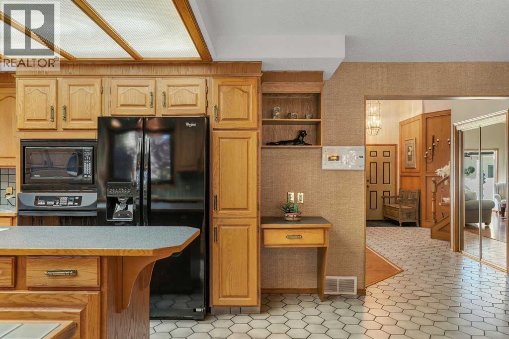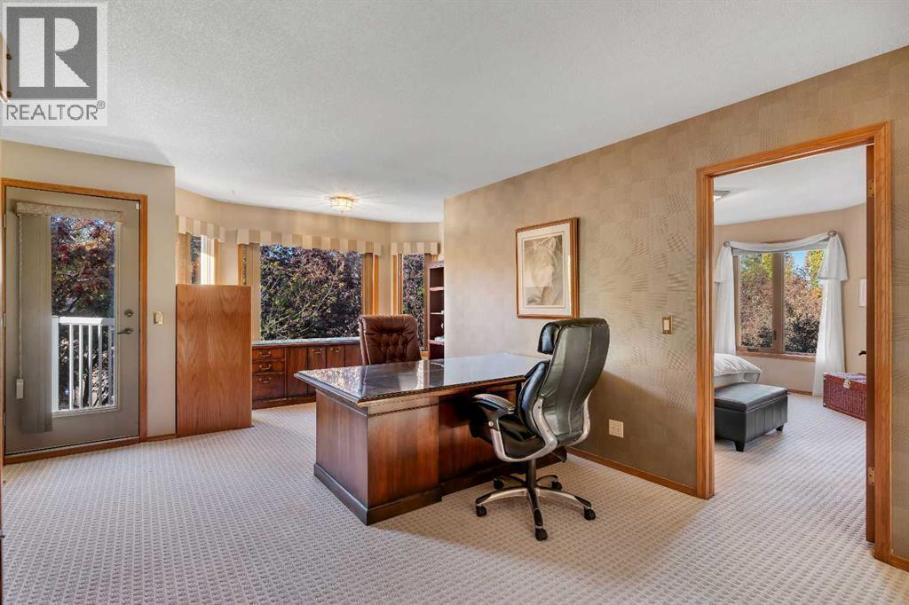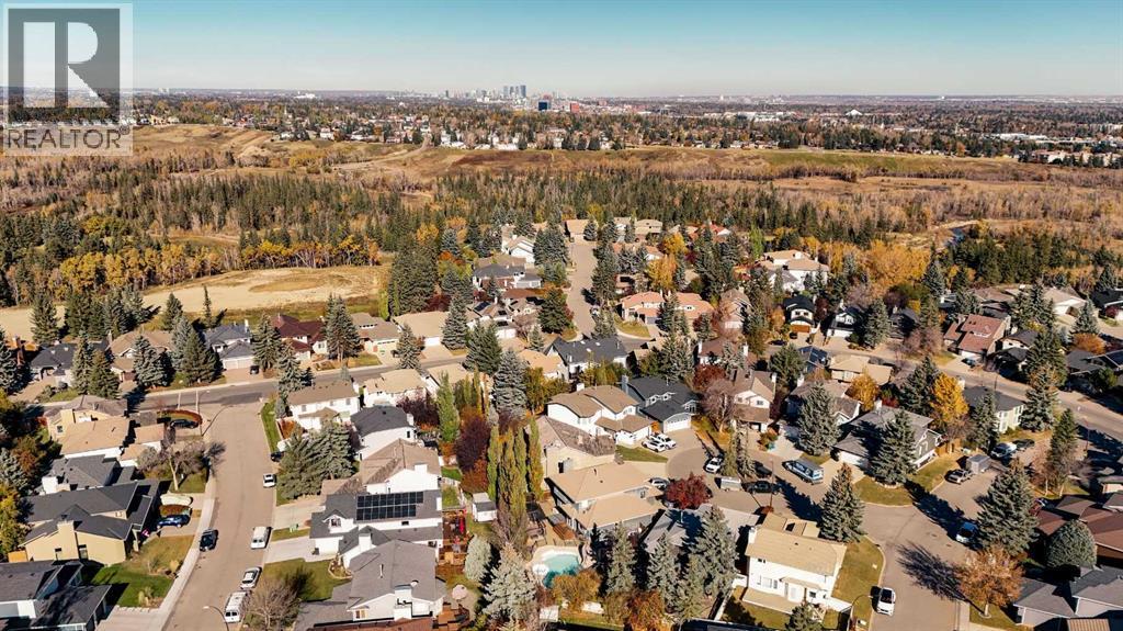 Tucked within a quiet cul-de-sac in the heart of Shawnee, this warm and inviting family home offers over 4,300 sq. ft. of developed living space and an exceptional layout designed for comfort, connection and everyday function. The grand foyer welcomes you with soaring open-to-above ceilings and a skylight that fills the space with natural light. A formal living and dining room with vaulted ceilings and oversized bayed windows set the stage for elegant entertaining, while hardwood flooring adds timeless charm. The well-planned kitchen provides ample cabinet space, integrated storage solutions, a gas cooktop, central island and built-in tech desk for catching up on homework or emails. A bayed breakfast nook overlooks the lush west backyard, creating a beautiful backdrop for family meals. The adjoining family room invites relaxation with a woodburning fireplace framed by built-ins and large windows with plantation shutters that capture the afternoon sun. Upstairs, an impressive primary bedroom delivers a true owner’s retreat with its own fireplace, dual closets, a built-in vanity and an indulgent 6-piece ensuite featuring double sinks, a jetted soaker tub, separate shower and bidet for ultimate luxury. A bright open-to-below flex area provides an ideal home office or reading lounge with access to a private balcony overlooking the peaceful backyard. The second bedroom and a 4-piece bath complete the upper level. Gather in the expansive recreation area on the lower level and enjoy the flexibility of having separate zones for media, fitness, games and play, complemented by 2 additional bedrooms and another full bathroom with dual sinks. Outdoors, a massive pie-shaped lot creates a serene, fully fenced west-facing backyard framed by mature trees. An expansive deck is perfect for barbeques, morning coffee or watching kids and pets play on the generous lawn. The oversized double attached garage provides plenty of space for vehicles and storage. Located moments from Fish Cree k Park, schools, playgrounds and everyday conveniences, this home blends space, light and location into a truly special family setting! (id:6769