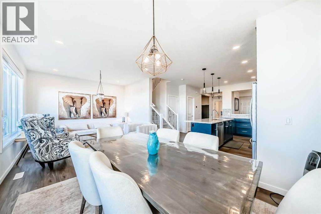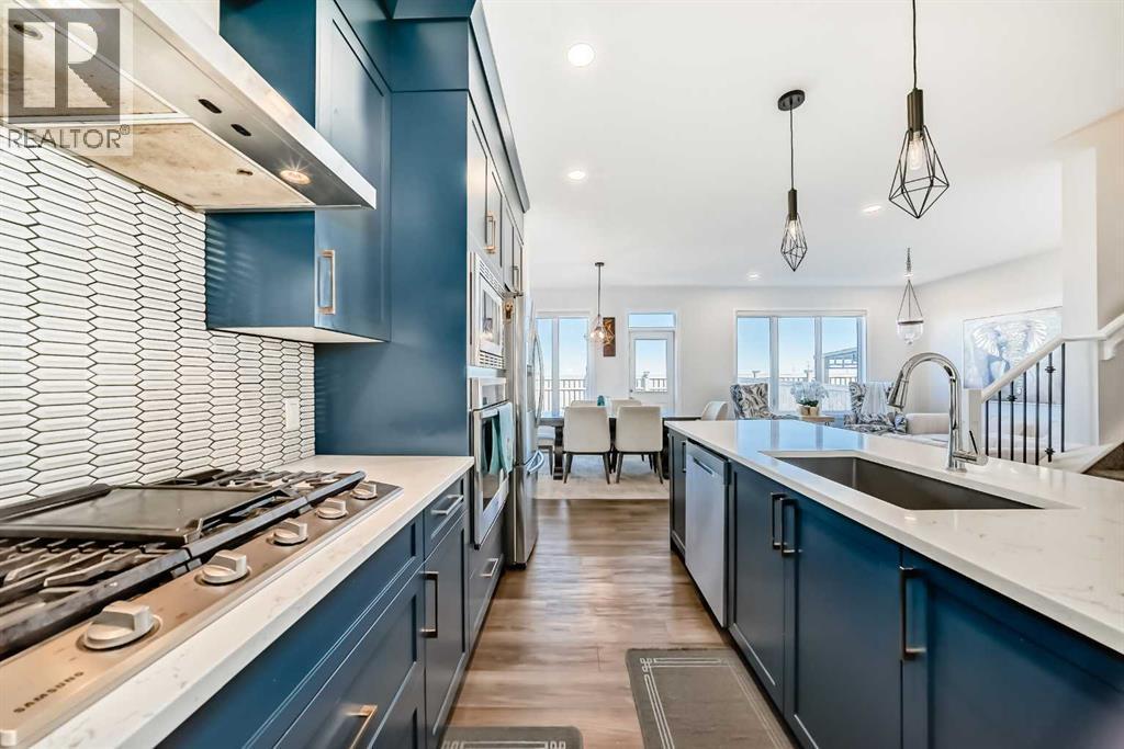 Step into modern elegance in the heart of Mahogany, Calgary’s premier lake community! This beautifully crafted 2-storey home blends luxury finishes with everyday comfort, offering over 2,250 sq. ft. of stylish living space. The main floor welcomes you with an inviting open layout, where the designer kitchen shines with built-in stainless appliances, a gas range, ceiling-height cabinetry, and a spacious quartz island perfect for family gatherings. A walk-through pantry, main floor office, and sleek open railings add both function and flair. Upstairs, you will find three large bedrooms including a serene primary retreat with a spa-inspired ensuite featuring a deep soaker tub and oversized shower. Both secondary bedrooms include walk-in closets, while the convenient upper-level laundry makes daily living a breeze. The basement awaits your creative touch with 9-ft ceilings and rough-in for a future bathroom. Outside, enjoy a fenced and landscaped backyard with stone accents and no neighbours behind. Enjoy lake access privileges with four-season lake living and just minutes from Mahogany Lake, parks, playgrounds, South Health Campus and YMCA. Easy access to 88 Street and stoney Trail ensures a smooth commute to any part of the city. Quick possession available! (id:6769
