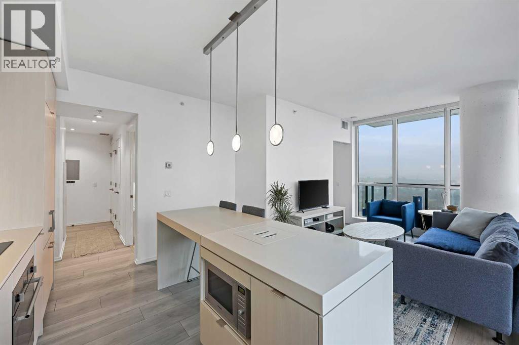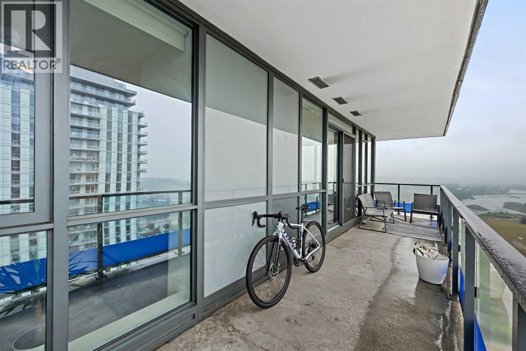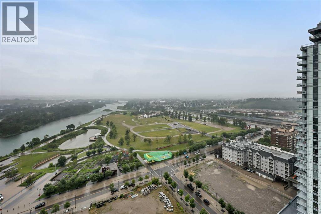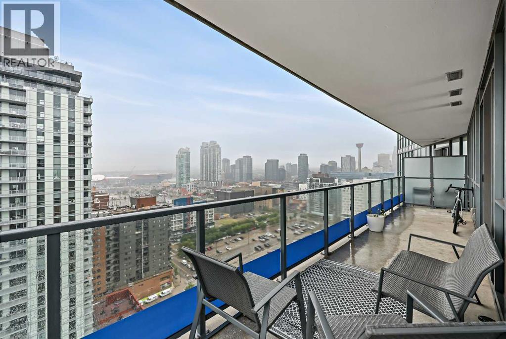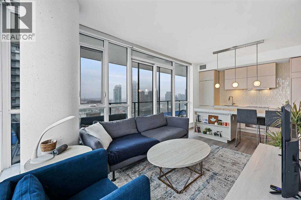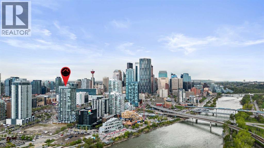 Experience elevated city living in this spectacular 21st-floor corner unit in the Verve, located in the vibrant heart of East Village. With unobstructed southeast views overlooking the Bow River, Fort Calgary, Stampede Park, and downtown skyline, this 2-bedroom, 2-bathroom residence combines location, light, and lifestyle in one of Calgary’s most walkable neighbourhoods. Floor-to-ceiling windows flood the open-concept space with natural light, while the set-back deep windowsills create an expansive, airy feel rarely found in high-rise condos. The 200+ sq ft wraparound balcony invites you to BBQ, lounge, and soak in the panoramic vistas day or night. Thoughtfully designed for comfort and style, the kitchen features sleek cabinetry, quartz countertops, a large island perfect for entertaining, and a built-in electric cooktop. The primary bedroom offers a tranquil retreat with stunning views and a modern 3-piece ensuite, while the second bedroom is ideal for guests, a home office, or den. A spacious 4-piece main bath, in-suite laundry room, and central air conditioning add to everyday convenience. The unit also includes a rare, oversized titled underground parking stall—big enough to fit a truck—and an assigned storage locker. The Verve offers exceptional amenities: a second-floor fitness centre, social lounge with kitchen and terrace, guest suites, and an exclusive 25th-floor rooftop patio and party room with unobstructed views. Perfectly positioned for active professionals, pet lovers, and investors alike. You're steps from the RiverWalk, bike paths, and an off-leash dog park across the street. The Central Library, Superstore, Studio Bell, and a growing list of East Village cafes, restaurants, and breweries are all within a 5-minute walk. Plus, you're in Calgary's free fare LRT zone for stress-free downtown commuting. Whether you're searching for a pet-friendly river-view condo, a modern downtown home with amenities, or a turnkey rental in a high-demand location, this top-floor end unit delivers it all. Don’t miss your opportunity to own one of East Village’s most desirable views. Book your showing today. (id:6769