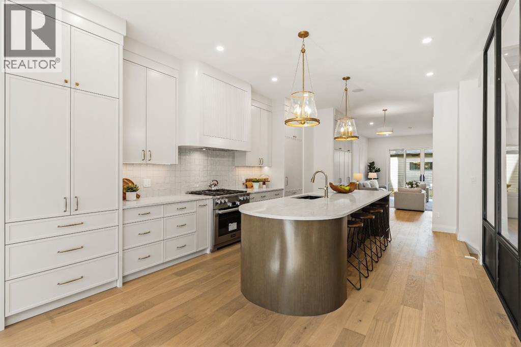 Welcome to The Vega — a beautifully crafted home by Cedar Rock Homes, set on one of Briar Hill’s most desirable streets. This four-bedroom, 3.5-bath residence offers over 3,200 sq ft of developed living space on an oversized 130-foot-deep lot. Architectural elegance meets thoughtful functionality and elevated finishes to create a space that feels both sophisticated and comfortable.Step inside to soaring 10-foot ceilings, wide-plank white oak floors, and natural light that fills every corner. The open-concept main floor flows seamlessly from the chef’s kitchen — complete with custom millwork and a full Miele appliance package — to the inviting living area anchored by a sleek gas fireplace and full dining space perfect for family gatherings and entertaining.With vaulted 10-foot ceilings on the upper floor, the primary suite feels like a private retreat, featuring heated floors, a curbless steam shower, freestanding tub, and dual walk-in closets. Two additional bedrooms — each with walk-in closets — share a spacious five-piece bath, while a pocket office provides a quiet spot to work or study.The lower level offers room to live and play, with a large family area, wet bar, home gym, fourth bedroom, full bathroom, and roughed in infloor heating — ideal for guests or extended family.Outside, enjoy quiet evenings in your private yard or coffee on the front courtyard patio. With a double detached fully insulated, drywalled and painted garage, smart-home wiring, and high-efficiency mechanicals, every detail has been designed for lasting comfort and performance.Nestled in Briar Hill, one of Calgary’s premier inner-city communities, you’re just minutes from Kensington, Foothills Hospital, the University of Calgary, and some of the city’s best parks and schools.The Vega — modern living, perfectly grounded in a classic Calgary neighbourhood. Book your private showing today! (id:6769