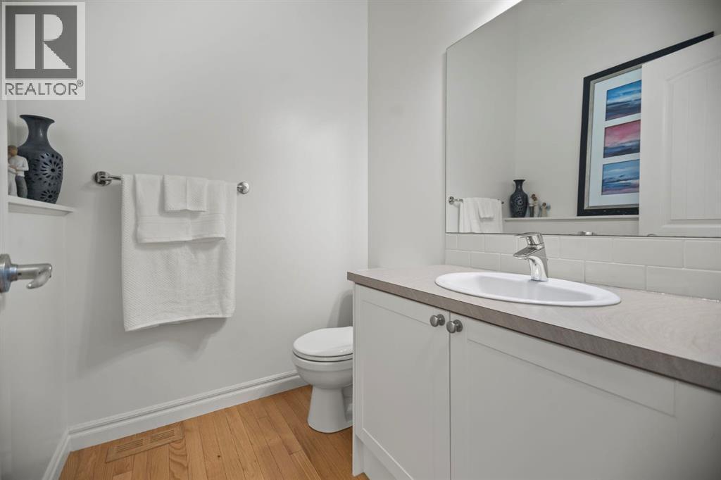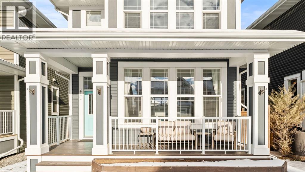 Welcome to 411 River Heights Crescent, a beautifully appointed home where timeless design meets modern sustainability. Thoughtfully designed with high ceilings, expansive windows, and a naturally flowing floor plan, this residence offers a perfect blend of light, space, and comfort. The main level features a bright and open living area anchored by a striking stone-surround gas fireplace and framed by large south-facing windows. The elegant kitchen is a true centerpiece showcasing timeless white cabinetry, a farmhouse sink, quartz countertops, hidden microwave, and a large uninterrupted island ideal for baking, entertaining, or family meals. Hardwood floating shelves add warmth and charm, while a 3rd rack dishwasher and spacious pantry enhance everyday functionality. Upstairs, the primary suite is a tranquil retreat with oversized windows, a large walk-in closet, and a spa-inspired ensuite with large vanity with generous storage, and a relaxing corner tub. Two additional bedrooms and a full bathroom with a large vanity complete the upper level. The fully developed basement extends the living space with a large, versatile recreation area perfect for hobbies, fitness, or family movie nights along with an additional bedroom and tons of storage space. This home stands apart with its professionally installed 7.36 kW Net Zero Solar System, designed for peak efficiency and long-term savings - generating over 40,900 kWh of energy in its first 5 years. Over its lifetime it will offset 151,000 lbs of coal; this system delivers near net-zero electricity costs averaging under $100/month for a family of six. Environmentally, it’s equivalent to planting 3,600+ trees or removing a vehicle from the road each year. Outside, the beautifully landscaped yard features raised garden beds, established perennials, and both north- and south-facing outdoor living spaces, a sunny front veranda and a private back deck off the dining room that has double sliding doors to extend the space natura lly for summer gatherings. It has a great size yard with a playhouse for the kids to enjoy. Located in a quiet, low-traffic section of River Heights Crescent, this home offers quick access to parks, playgrounds, schools, and walking paths, with easy routes to downtown Cochrane and Calgary. It’s a rare opportunity to enjoy timeless craftsmanship, a smart layout, and modern energy independence all in one remarkable home. (id:6769