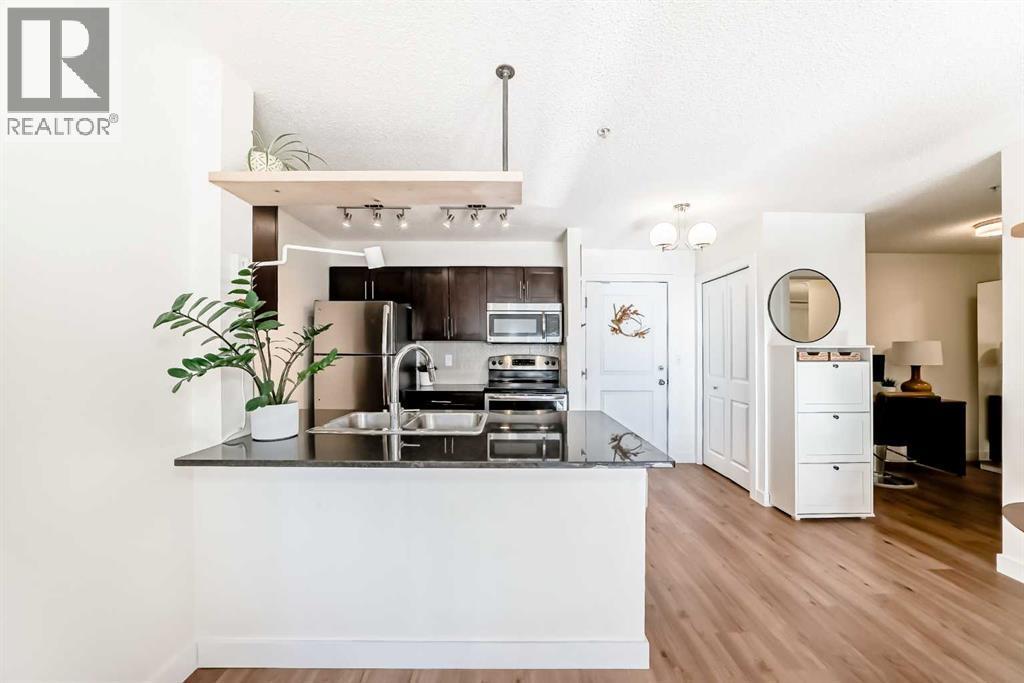 NEW PRICE; SELLERS ARE MOTIVATED!!! Welcome to this bright and spacious 2-BEDROOM PLUS DEN, 2-BATHROOM apartment featuring TWO UNDERGROUND PARKING STALLS! This beautiful home offers numerous upgrades, including NEW LUXURY VINYL PLANK FLOORING throughout with an EXTRA LAYER OF SONOPAN INSULATION, and NEW VINYL TILE in both bathrooms. The OPEN-CONCEPT layout creates an inviting space for everyday living and entertaining. The kitchen features GRANITE COUNTERTOPS and a BREAKFAST BAR, perfect for meal prep or casual dining. The dining area easily accommodates a larger table, while the cozy living room is ideal for relaxing at the end of the day. The primary suite offers SPACE FOR A KING-SIZED BED, a walk-through closet, and a private ensuite bathroom. The second bedroom is generously sized, and the DEN provides flexibility for a home office, study area, or extra storage. Additional highlights include IN-SUITE LAUNDRY, two titled underground parking stalls, ample visitor parking, and UPDATED COMMON AREAS. Young families will love the NEARBY GREENSPACE and PLAYGROUND. WALKING DISTANCE TO THE FRANKLIN C-TRAIN and minutes from Deerfoot Trail, schools, shopping, and all amenities. Don’t miss out—book your showing today! (id:6769