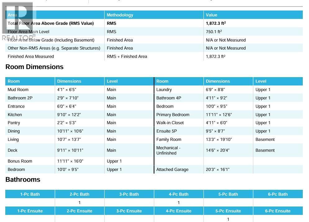 | 4pc Bathroom | Upper Level | 4.92 Ft x 9.17 Ft |