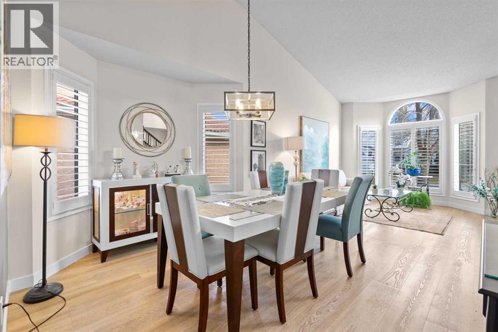 Welcome to this beautifully kept 4-bedroom family home tucked away in one of NW Calgary’s most sought-after estate neighbourhoods, the Hamptons! This place has the perfect mix of comfort, space, and convenience, it is ideal for families who love a great community vibe.As you walk in, you’ll notice the high vaulted ceilings and the eye-catching, updated staircase that really sets the tone for what this home has to offer. You start with a bright formal living room, where stylish plantation shutters add a touch of elegance. Right next door, the formal dining area is adorned with a lovely bay flanking window and tons of natural light. Vinyl plank flows through the entire main level, bringing a sense of style and ease of care that everyone can appreciate.The kitchen features two-tone cabinets, durable wrapped arborite counters, a black granite sink, and a sleek black appliance package. There's also a small workstation for holding your paperwork and laptop. The kitchen also includes a casual eating nook that leads to a cozy, sunken family room. The family room has a wood-burning fireplace with gas assist and is flanked with built-in bookshelves. Finally, just outside the eating nook you have access to the covered deck and the west facing backyard. This main living area is a perfect spot to relax with the family or entertain your guests, whether it is a BBQ in the summer or a cool winter day.The main level also includes a handy 2-piece powder room, laundry area, and a private office with its own unique shower — great for guests or even your a place to clean up your pets!The updated winding staircase takes you upstairs where you will find the spacious west facing primary bedroom. The attached primary suite includes a walk-in closet, separate shower and a large-jetted tub. here are also two additional good sized bedrooms and a bathroom, so this makes for a great home for your growing family. The fully finished basement adds even more living space, with a big re c area, a family room, a fourth bedroom (non-egress window), and plenty of storage.Outside, the sunny west-facing backyard is perfect for kids, pets, or weekend barbecues — lots of space to play and unwind.Quick access to Stoney Trail means you are only minutes from access to the highway out to the mountains, Cross Iron Mills or the airport. Located just steps from parks, tennis courts, walking paths, and close to schools, shopping, and amenities, this home really has it all. (id:6769