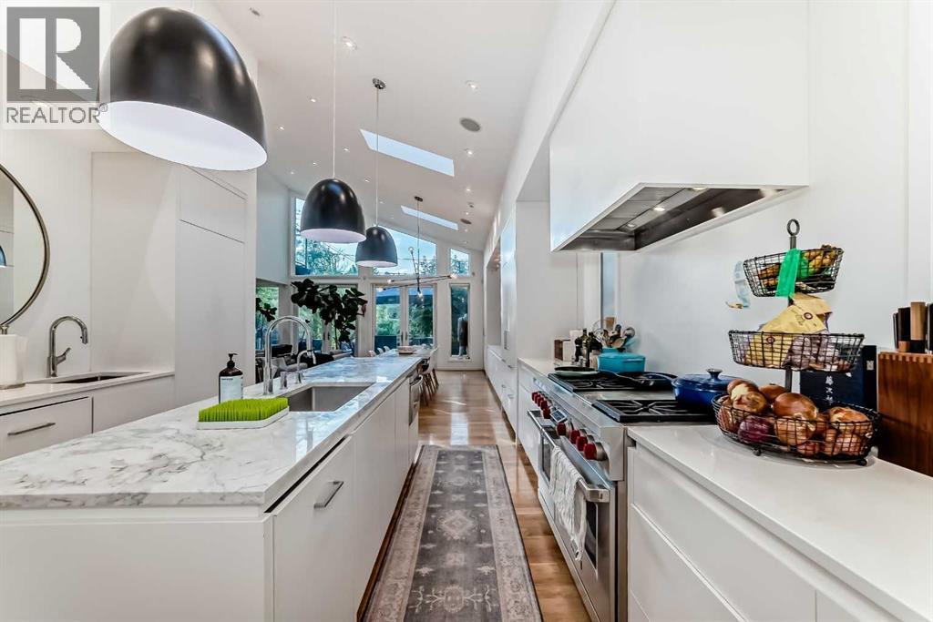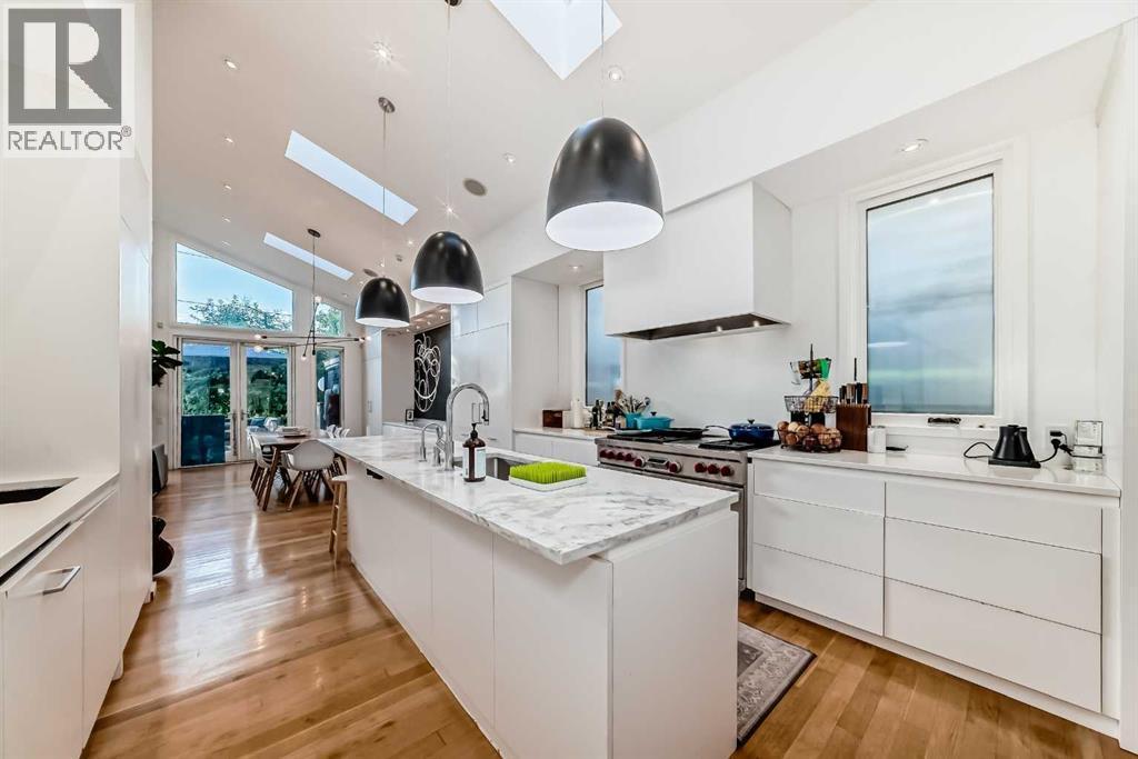 Welcome to Elbow Park! Nestled along the banks of the Elbow River and located on the prestigious Riverdale Avenue—one of Calgary’s most desirable streets—this stunning 3,795 sq ft home offers breathtaking river views, exceptional design, and the ideal spaces your family has been dreaming of.Designed with openness and elegance in mind, the home features soaring vaulted ceilings, floor-to-ceiling windows, and two cozy fireplaces that enhance the inviting atmosphere. The open-concept main level boasts a bright living room, a quiet home office, a formal dining room, and a spacious family room. The gourmet kitchen is a chef’s dream with granite countertops, a breakfast nook, and a casual eating area.Upstairs, the luxurious primary suite overlooks the river and includes a private retreat, two generous walk-in closets, and a spa-like 6-piece ensuite. Two additional bedrooms share a 4-piece bathroom, and a bright loft area offers views over the family room below.The fully developed lower level includes a media/family room, two more bedrooms, an exercise room, and a 3-piece bathroom. Step outside to enjoy the peaceful setting featuring river views, a large concrete patio, and a professionally landscaped yard perfect for relaxation and entertaining. (id:6769