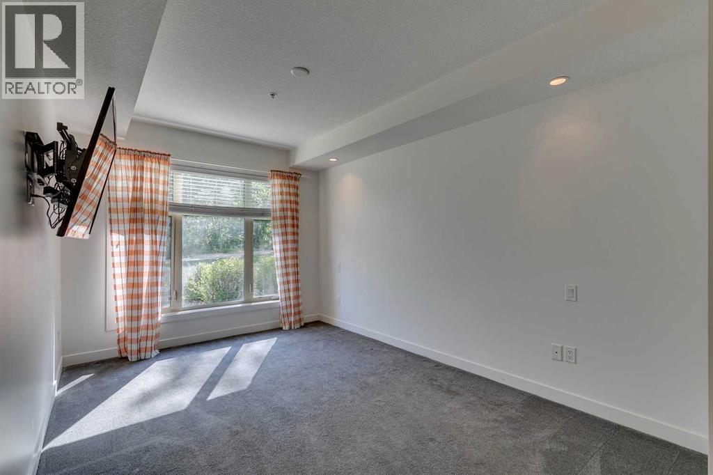 Nestled within the serene community of Aspen Woods, this charming 2-bedroom, 2-bathroom condo exudes comfort and style, offering a perfect blend of modern living and natural beauty. With its inviting open-concept layout and thoughtful design, this residence provides a warm and welcoming ambiance from the moment you step inside. Upon entering, you are greeted by a spacious living space, with natural light streaming through the large windows, creating an airy atmosphere. The seamless flow between the kitchen, living room (and dining if you wish) makes entertaining a breeze, allowing for effortless interaction with family and guests. The well-appointed kitchen boasts contemporary flat panel cabinetry, built in pantry, granite countertops, sleek tile backsplash, and stainless-steel appliances, providing both functionality and style for the aspiring chef. Whether preparing a quick breakfast or hosting a gourmet dinner party, this culinary space is sure to inspire. The spacious living room provides ample space for relaxation and entertaining, as well as additional room for a dining space, if you so desire. Step out the garden door to your private patio…and enjoy a quiet cup of coffee in the morning, or relax after a long day. The primary suite serves as a peaceful retreat, featuring a generously sized bedroom, two closets, and a spa inspired ensuite including double sinks, a stand up shower and separate soaker tub. The second bedroom is equally well-appointed, offering ample space, natural light, and convenient access to the adjacent full bathroom (also with dual sinks). Whether utilized as a guest room, home office, or personal sanctuary, this versatile space can easily adapt to suit your individual needs. For added convenience, this unit also offers insuite laundry, titled parking, a storage locker as well as access to building amenities including gym, bike storage, rentable guest suites and visitor parking. Aspen Woods offers an array of amenities for residents to enjoy, including lush green spaces, walking trails, grocery store, shopping and recreational facilities. Whether you prefer a leisurely stroll through the neighborhood or a day of outdoor adventure, there is something for everyone to enjoy in this idyllic setting. Don't miss your opportunity to make this dream home a reality – schedule your private showing today! (id:6769