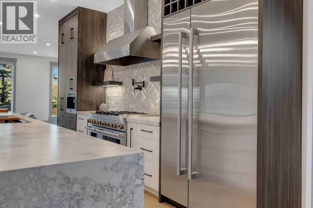 Welcome to your dream home in the heart of Rosemont, a stunning front drive-under bungalow located directly across from Confederation Park. This newly built, custom-designed residence combines modern luxury, thoughtful craftsmanship, and the best of Calgary’s inner-city lifestyle. Enjoy breathtaking park views from your front windows, stroll across the street to the walking paths, or relax in your own private backyard retreat featuring a sports court for pickleball or basketball and professional landscaping. With parkland in front and recreation in back, this home offers an unmatched blend of serenity, space, and sophistication.Step inside and you’ll immediately feel the quality. The grand foyer opens to a bright, open floor plan with 10-foot ceilings, expansive windows, and rich hardwood floors flowing throughout. Natural light fills every space, creating an airy and inviting atmosphere. The spacious living room is a statement of design, complete with a custom library wall and incredible park views, perfect for both relaxation and entertaining.At the heart of the home is the chef-inspired kitchen, showcasing a spectacular 18-foot island with quartz coutertops, JennAir appliances, a massive walk-in butler’s pantry, duel kitchen sink faucets and a handcrafted stone backsplash that adds warmth and character. Whether you’re preparing family meals or hosting friends, this kitchen is designed to impress. The dining area opens through large glass doors to a sun-filled deck, the perfect spot for morning coffee, outdoor dinners, or quiet evenings overlooking the park.The main level offers three spacious bedrooms, each designed for comfort and privacy. The primary suite is a true retreat, featuring a walk-in closet and a spa-inspired ensuite with a freestanding tub, oversized glass shower, and double vanity. Two additional full bathrooms and a powder room provide comfort and convenience for guests and family alike. The main floor also includes a large, beautifully desi gned laundry area with custom cabinetry and plenty of workspace to make daily living effortless.Downstairs, the fully finished lower level continues the home’s thoughtful design with a spacious recreation area, and direct access to the oversized drive-under garage. You’ll also find a large additional bedroom with a generous closet, perfect for guests, teens, or extended family. Set on a quiet, tree-lined street, this home offers the perfect balance of nature and city living. You’re just minutes from downtown, SAIT, the University of Calgary, shopping, schools, and transit, all while enjoying peaceful park-front living in one of Calgary’s most desirable neighbourhoods.This is more than a home; it’s a lifestyle. Experience luxury, comfort, and timeless design across from Confederation Park in the heart of Rosemont. (id:6769