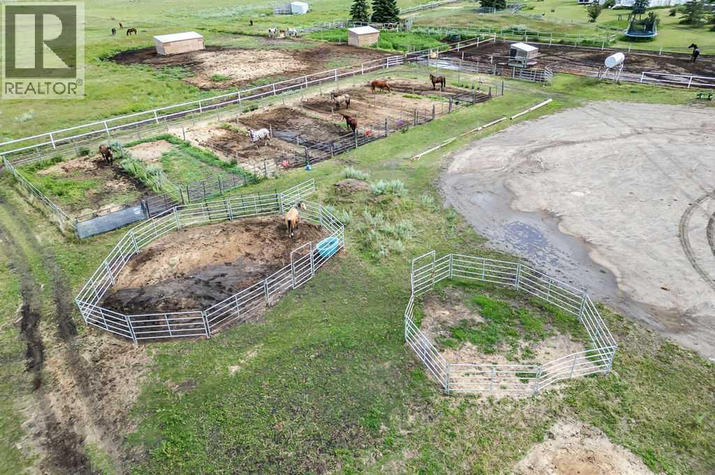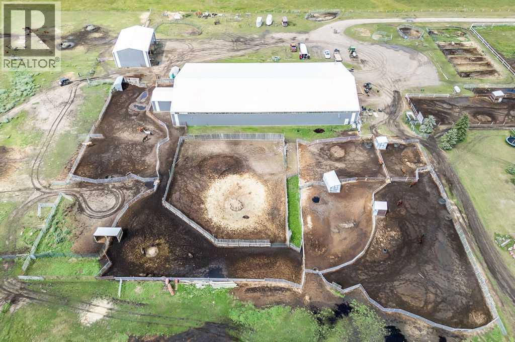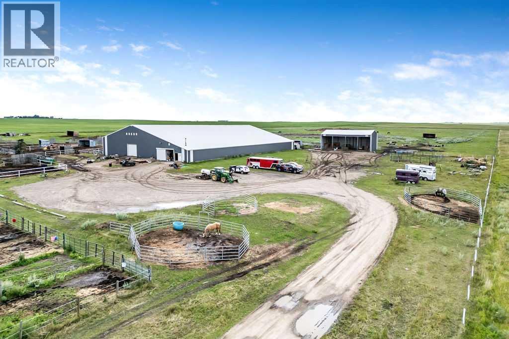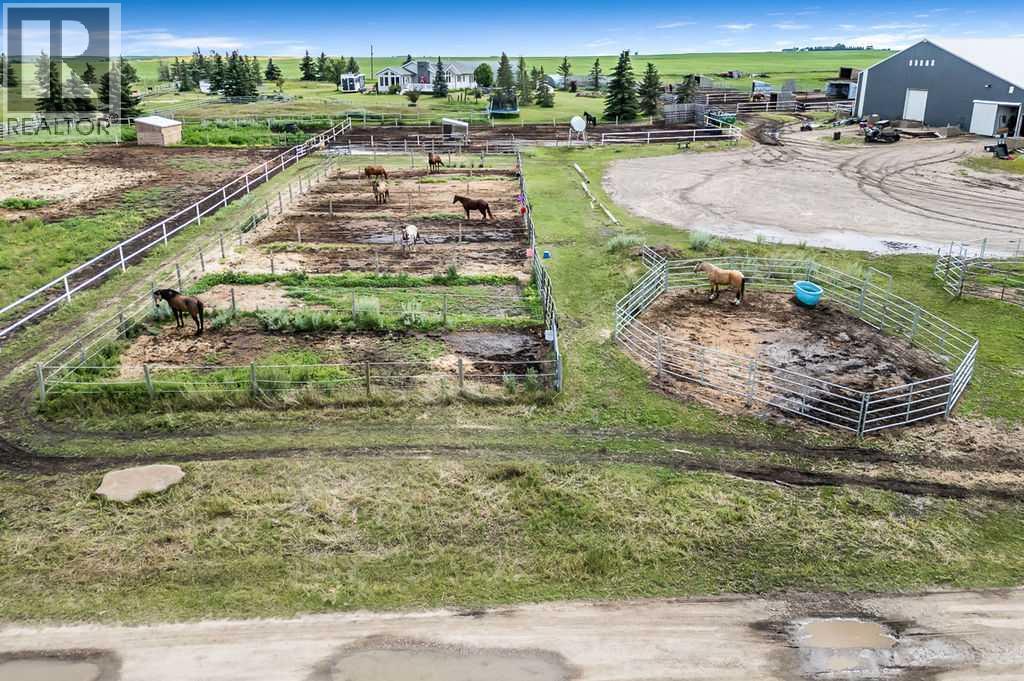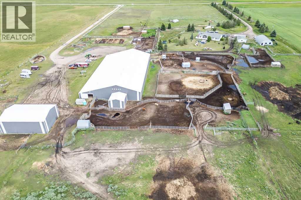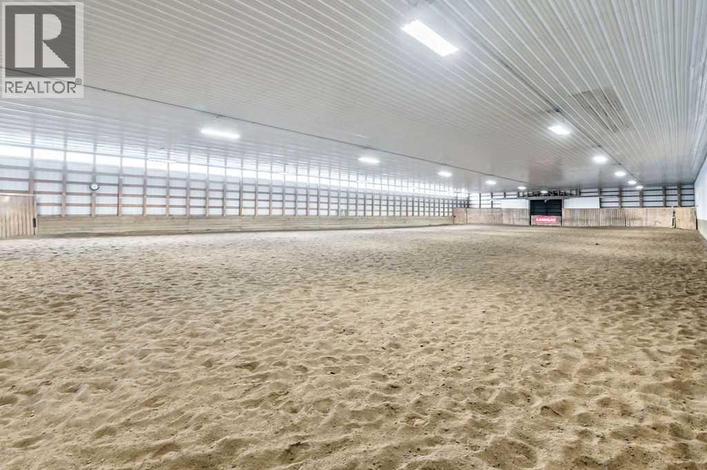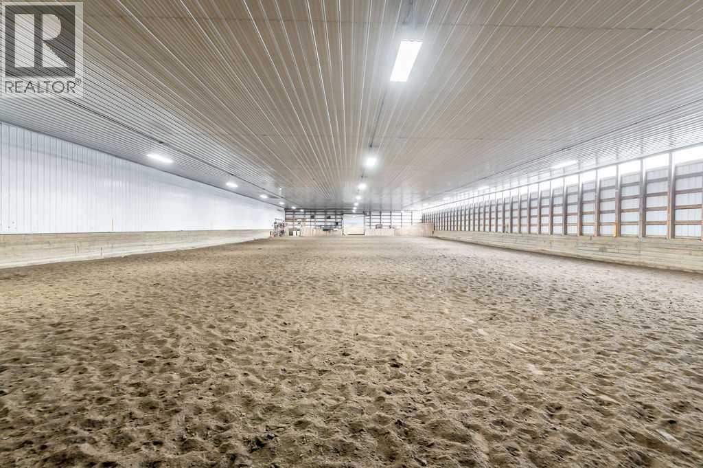 PRICE REDUCTION!! This property ticks all of the boxes for the serious HORSEPERSON! On this level 40 ACRE parcel you and your horses will find your own retreat from rain,wind, snow, misquitoes,heat and can ride 24 hours a day in the 180'x80' bright,heated INDOOR RIDING ARENA! Saddle up next door in the ATTACHED 12 STALL BARN ( 24'x80'- 9 with auto waterers) with a wash rack and separate tack room! For boarders there are 14 double wide individual tack lockers. On the nicer days enjoy the large OUTDOOR panelled ARENA ( 130'X240') or just turn your horse out to graze on the 30 + acres of pasture. Several individual turn out pens with shelters and shared waterers(5) and a 48'x60' HAY SHED ( built in 2015)complete this nicely located EQUINE FACILITY just 30 minutes from Okotoks! Other nice additions to this property are a 32' x48' quonset with concrete floor to park the RV or horse trailer and a 24'x26' double detached fully drywalled garage. The 1845ft2 4 BEDROOM,3 BATHROOM BUNGALOW is nicely laid out and is bright and flooded with SUNLIGHT form skylights and large west facing windows in the living room and is very accomodating for entertaining or a large family. The lower level is fully developed with a huge 4th bedroom,3 piece bath and a large recreation room with tons of storage! This property is a good opportunity for anyone interested in aquiring a full training facility at an affordable price and is willing to make their own further improvements to build equity and enjoy their passion for horses! (id:6769