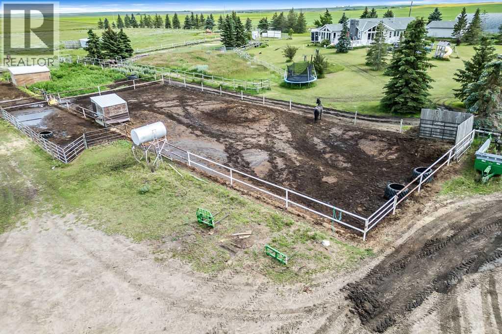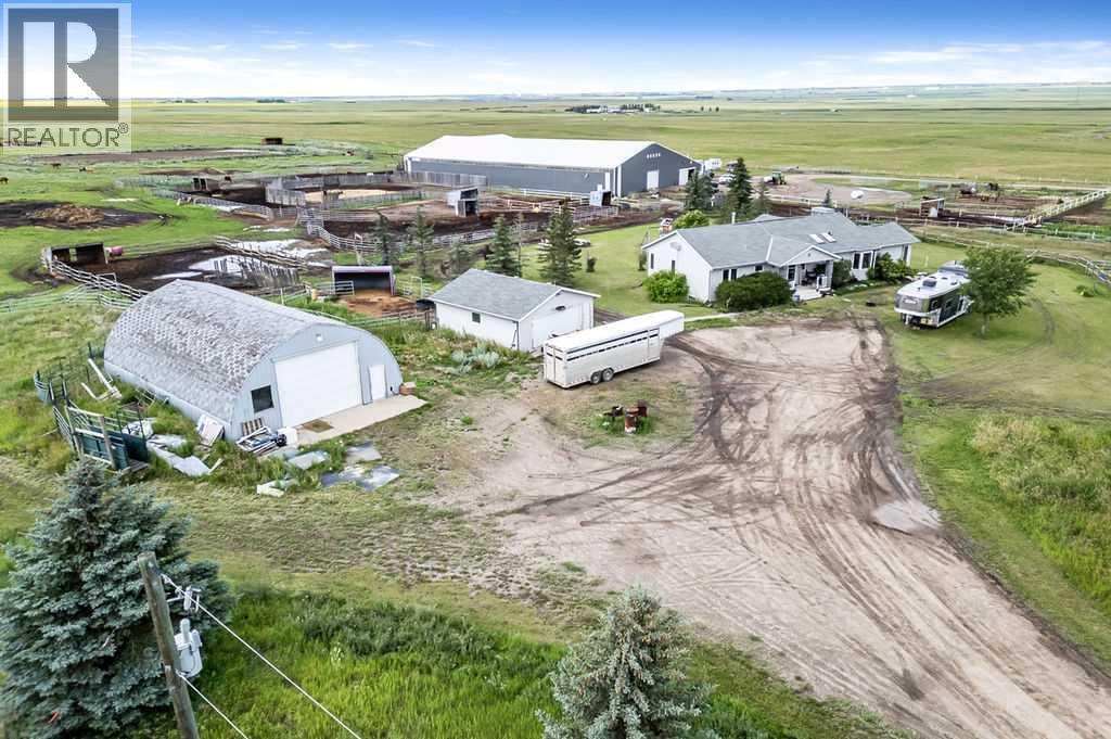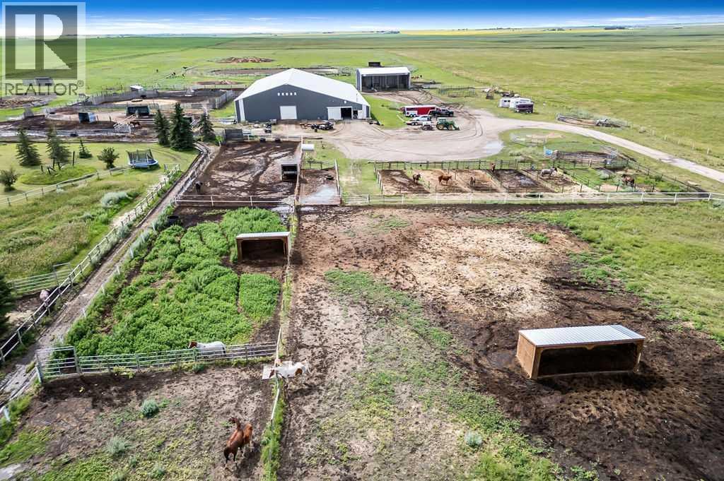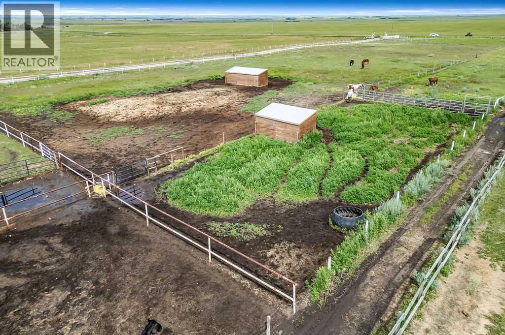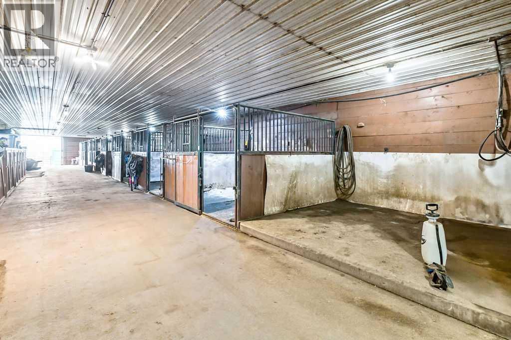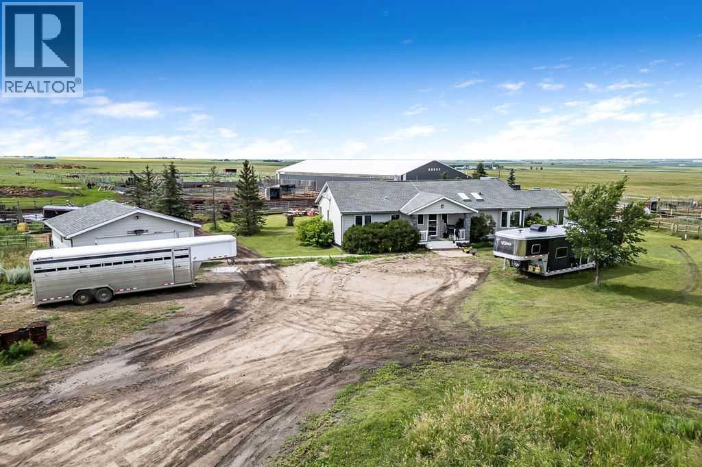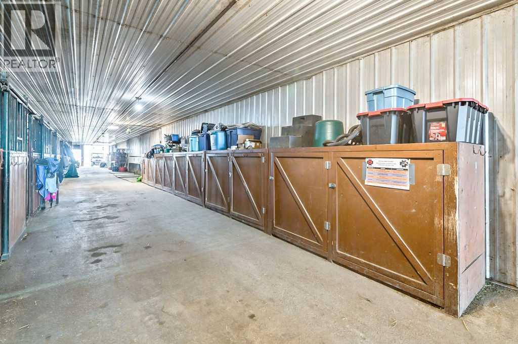PRICE REDUCTION!! This property ticks all of the boxes for the serious HORSEPERSON! On this level 40 ACRE parcel you and your horses will find your own retreat from rain,wind, snow, misquitoes,heat and can ride 24 hours a day in the 180'x80' bright,heated INDOOR RIDING ARENA! Saddle up next door in the ATTACHED 12 STALL BARN ( 24'x80'- 9 with auto waterers) with a wash rack and separate tack room! For boarders there are 14 double wide individual tack lockers. On the nicer days enjoy the large OUTDOOR panelled ARENA ( 130'X240') or just turn your horse out to graze on the 30 + acres of pasture. Several individual turn out pens with shelters and shared waterers(5) and a 48'x60' HAY SHED ( built in 2015)complete this nicely located EQUINE FACILITY just 30 minutes from Okotoks! Other nice additions to this property are a 32' x48' quonset with concrete floor to park the RV or horse trailer and a 24'x26' double detached fully drywalled garage. The 1845ft2 4 BEDROOM,3 BATHROOM BUNGALOW is nicely laid out and is bright and flooded with SUNLIGHT form skylights and large west facing windows in the living room and is very accomodating for entertaining or a large family. The lower level is fully developed with a huge 4th bedroom,3 piece bath and a large recreation room with tons of storage! This property is a good opportunity for anyone interested in aquiring a full training facility at an affordable price and is willing to make their own further improvements to build equity and enjoy their passion for horses! (id:6769