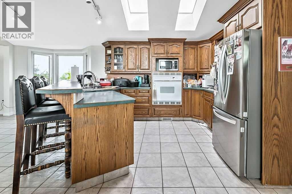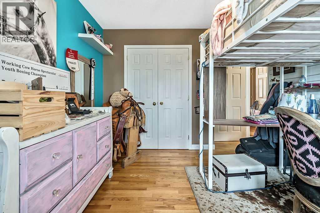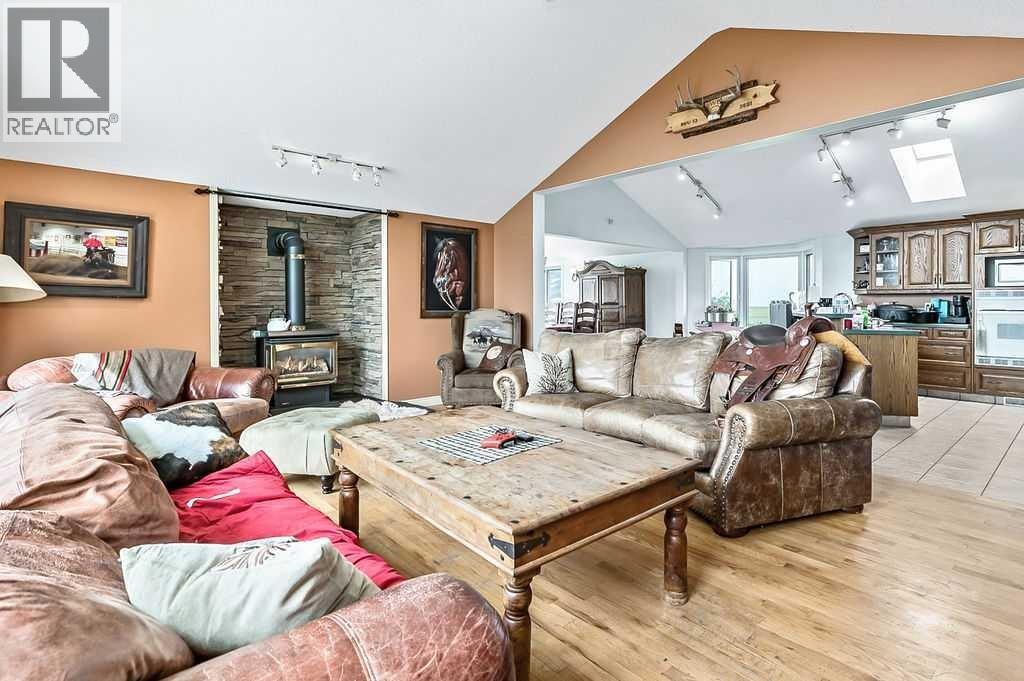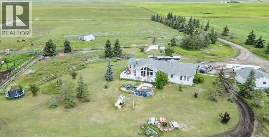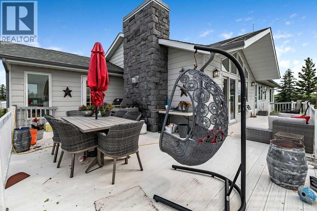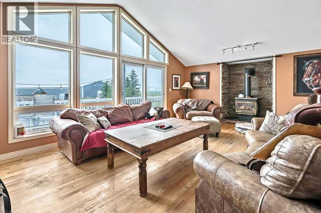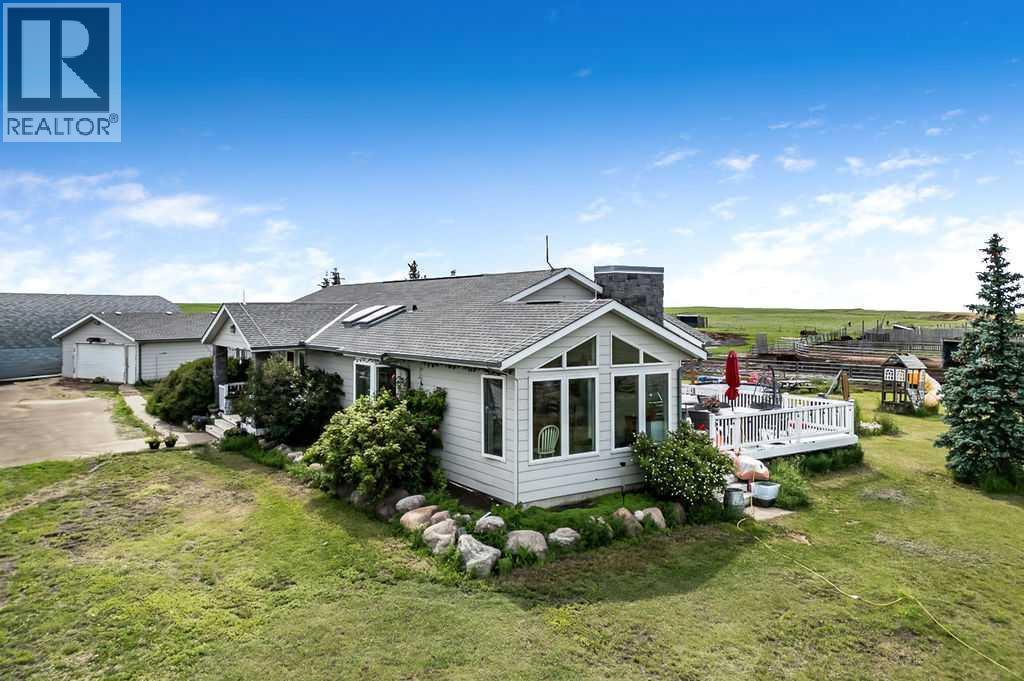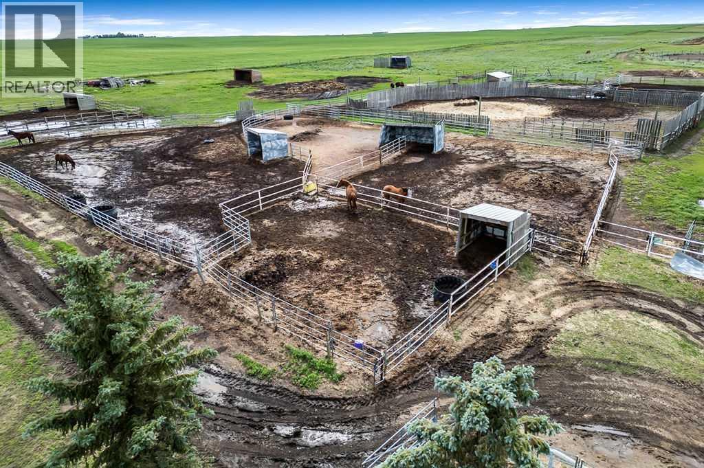 PRICE REDUCTION!! This property ticks all of the boxes for the serious HORSEPERSON! On this level 40 ACRE parcel you and your horses will find your own retreat from rain,wind, snow, misquitoes,heat and can ride 24 hours a day in the 180'x80' bright,heated INDOOR RIDING ARENA! Saddle up next door in the ATTACHED 12 STALL BARN ( 24'x80'- 9 with auto waterers) with a wash rack and separate tack room! For boarders there are 14 double wide individual tack lockers. On the nicer days enjoy the large OUTDOOR panelled ARENA ( 130'X240') or just turn your horse out to graze on the 30 + acres of pasture. Several individual turn out pens with shelters and shared waterers(5) and a 48'x60' HAY SHED ( built in 2015)complete this nicely located EQUINE FACILITY just 30 minutes from Okotoks! Other nice additions to this property are a 32' x48' quonset with concrete floor to park the RV or horse trailer and a 24'x26' double detached fully drywalled garage. The 1845ft2 4 BEDROOM,3 BATHROOM BUNGALOW is nicely laid out and is bright and flooded with SUNLIGHT form skylights and large west facing windows in the living room and is very accomodating for entertaining or a large family. The lower level is fully developed with a huge 4th bedroom,3 piece bath and a large recreation room with tons of storage! This property is a good opportunity for anyone interested in aquiring a full training facility at an affordable price and is willing to make their own further improvements to build equity and enjoy their passion for horses! (id:6769