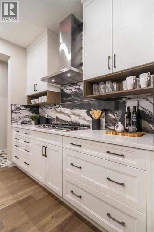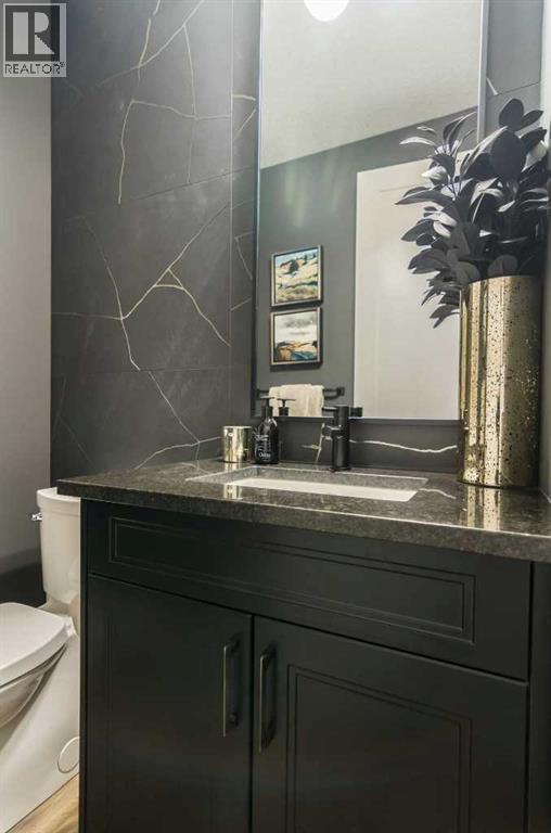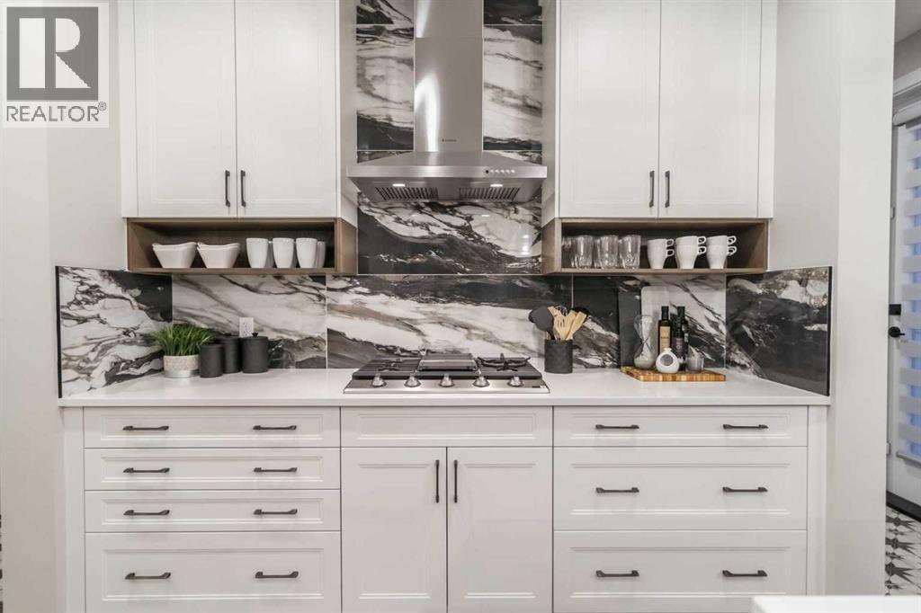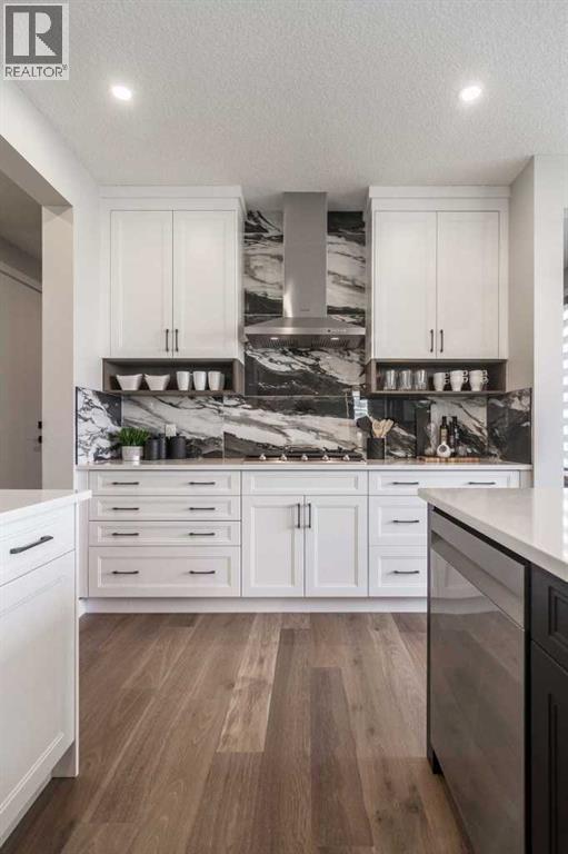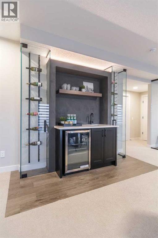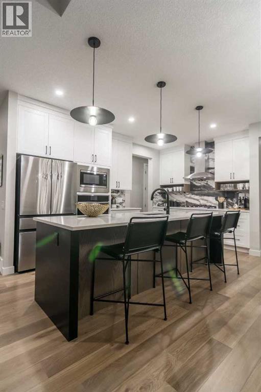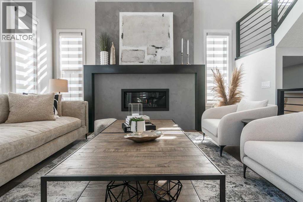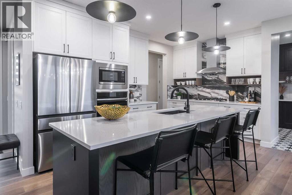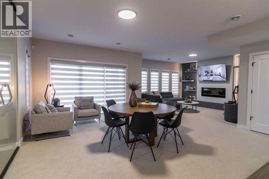 An incredible opportunity to own a brand-new estate home in the sought-after community of Cimarron Estates! Perfectly nestled in the heart of the neighbourhood, this home sits on an expansive 1/3 acre lot within walking distance to nearby amenities. Thoughtfully designed and extensively upgraded, it offers over 3,200 sq. ft. of developed living space across 3 levels, featuring 4 bedrooms, 3.5 bathrooms, 3 versatile living areas, a dedicated home office, a triple attached garage, and generous outdoor living space. The main level showcases a gourmet kitchen that overlooks the dining area and great room, highlighted by a dramatic open-to-below ceiling and a gas fireplace with a tile surround. The kitchen is equipped with an impressive appliance package, including a gas cooktop, chimney hood fan, built-in wall oven and microwave, pot filler, Silgranit apron-front sink, quartz countertops, and a full butler’s pantry/mudroom. This functional space is complete with a second fridge, sink, full upper-and-lower cabinetry, and a built-in bench with lockers—providing both style and everyday convenience. A front den (perfect for a home office) and a 2-piece powder room complete this level. Upstairs, you’ll find a spacious bonus room and a luxurious primary suite overlooking the backyard. The ensuite offers dual sinks, a freestanding soaker tub, and a walk-in shower, along with a generous walk-in closet. Two additional bedrooms, a full bathroom, and a convenient laundry room complete the upper floor. The fully developed walk-out basement is designed for entertaining, with a wet bar, two living/rec areas, a fourth bedroom, full bathroom, and a large mechanical room with additional storage. The exterior of the home is just as impressive, with Hardie board siding and an expansive main-level deck overlooking the greenspace behind the property. Designed with both elegance and functionality in mind, this home provides a true estate lifestyle inside and out. Currently under construction , this stunning estate home will be move-in ready in winter 2025/2026. Please note: photos are from a past project and may not be an exact representation of the home for sale. (id:6769