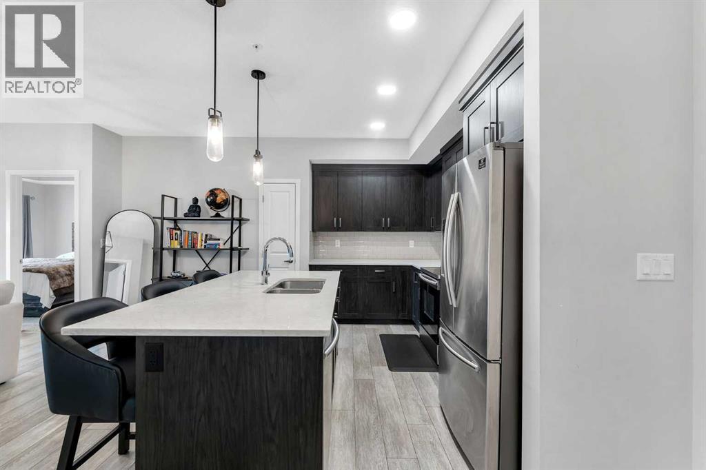 This beautifully designed 2-bedroom, 2-bathroom condo offers upscale living in one of Calgary’s most sought-after and established communities. Built in 2019, this modern unit features high-end finishes throughout, including quartz countertops, ceiling-height kitchen cabinetry, sleek stainless steel appliances, designer tile flooring, and an elegant tray ceiling that adds architectural charm and sophistication. Nestled in Harvest Hills, you’ll love the community’s blend of tranquility and accessibility. Enjoy walking paths, green spaces, and nearby ponds, all while being just minutes away from schools, shopping, restaurants, recreational facilities, public transit, and major roadways including Deerfoot and Stoney Trail. Calgary International Airport is also just a short drive away.Whether you’re a first-time buyer, downsizing, or investor, this exceptional condo checks all the boxes for style, comfort, and location. Book your showing today and experience upscale living in a vibrant community! (id:6769