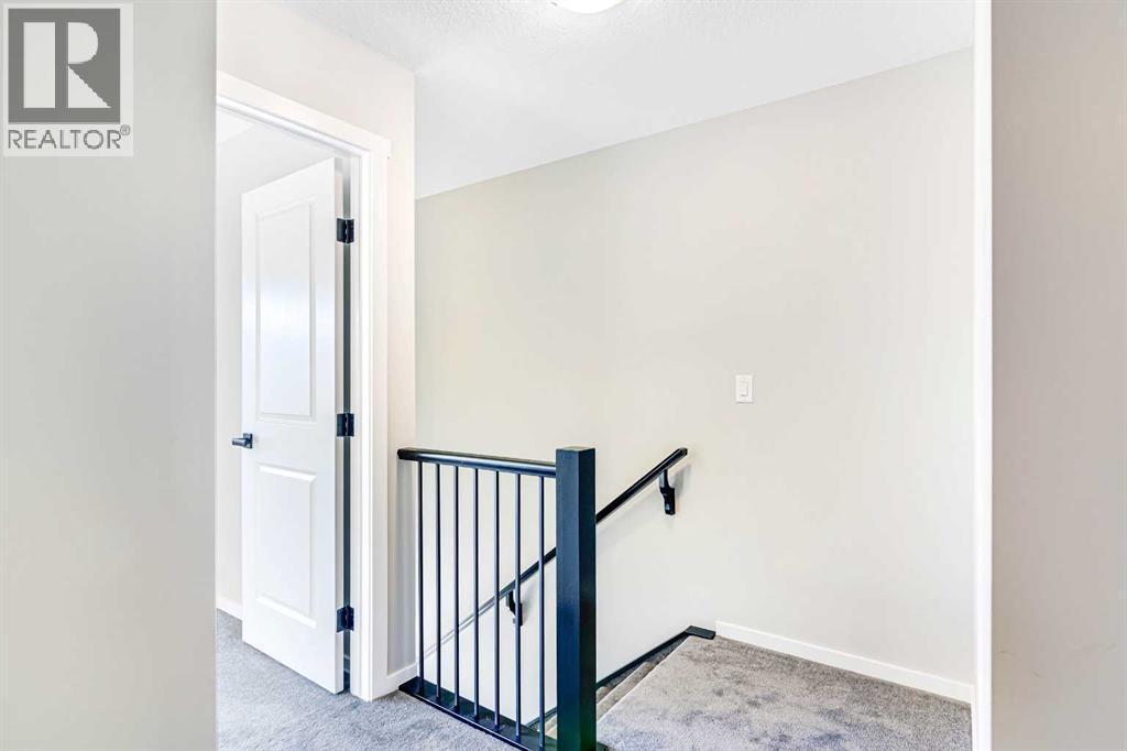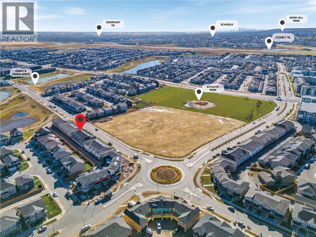 Welcome to this SOUTH FRONT FACING NO CONDO FEE END UNIT townhome! Font facing a large green space and a future school. Solar Panels on the roof. Impressive curb appeal and a modern design blends with a highly functional layout boasting 3 beds / 3 baths and over 1500 sq ft of finished living area. This home has also been highly upgraded throughout - raised kitchen cabinets with crown molding, stainless steel appliances, upgraded luxury vinyl plank, quartz countertops, tiled bathroom walls, as well as many additional pot light fixtures. Upon entry the open concept is exemplified with an inviting Kitchen/Dining/Living space on the main floor. The kitchen is equipped with upgraded stainless steel appliances, full height kitchen cabinets, and loads of counter space and storage! There is also a cozy living room, a large pantry closet, a 2 piece bath and double attached garage. Upstairs, the primary bedroom is bright and spacious and has a private 4 piece ensuite with a large walk-in shower. The bonus room provides more privacy for the primary bedroom from the other 2 bedrooms upstairs. There is also a full laundry room and 4 piece bath that completes the upstairs. The lower level is bright and has a 3 piece bathroom rough-in that is perfect for a future bathroom. With quick access to anywhere in Calgary via Stoney Trail and multiple nearby shopping options including Crossiron Mills, the quickly maturing community of Carrington is a great option for the busy family! Book your showing today! (id:6769