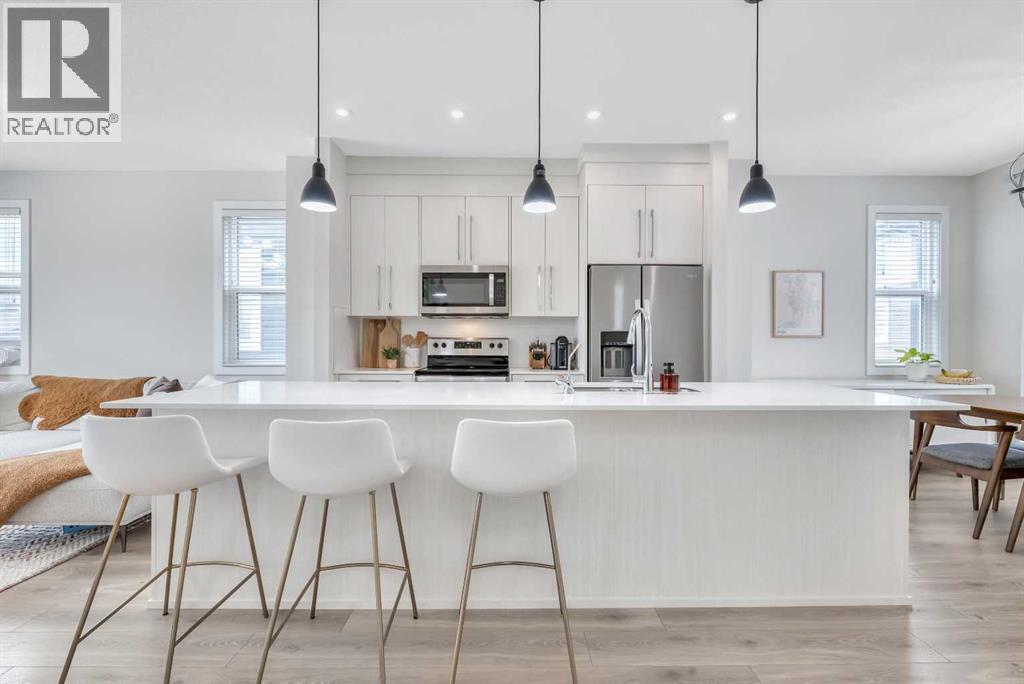 Welcome to this stunning 3 BEDROOM 2.5 BATH CORNER END UNIT Townhouse, which comes with a HUGE HEATED DOUBLE ATTACHED GARAGE and a SOUTH-FACING balcony!!! Upon entry, you will be greeted by an entryway leading to a spacious bedroom, a mudroom closet, and the double attached garage-where you can find the utility room. The second floor offers a great open-concept floor plan that includes the dining area, kitchen, living area, corner office space, a half bath, and the balcony. The kitchen is equipped with stainless steel appliances, quartz countertops, a long kitchen island, and a well-sized pantry. The top floor boasts TWO LARGE AND COZY MASTER BEDROOMS WITH EACH ROOM HAVING ITS OWN WALK-IN CLOSET AND ITS OWN ENSUITE BATHROOM!!! The washer and dryer is also located on the top floor for added convenience. Since this is a corner end unit, you will have the luxury of having extra windows that allow ample amount of outdoor light indoors-making this home bright and airy. In the balcony, you will find a gas line for your barbecue grill as an added bonus. There is plenty of street parking for your guests just steps away from this home's front door, as well as a number of free visitor's parking when you drive inside the complex. This home is close to bus stops, schools, parks, restaurants, and Shopping Centres; as well as it offers easy access to Stoney Trail for fast and easy commute. Don't miss the opportunity to make this beautiful home yours!!! (id:6769