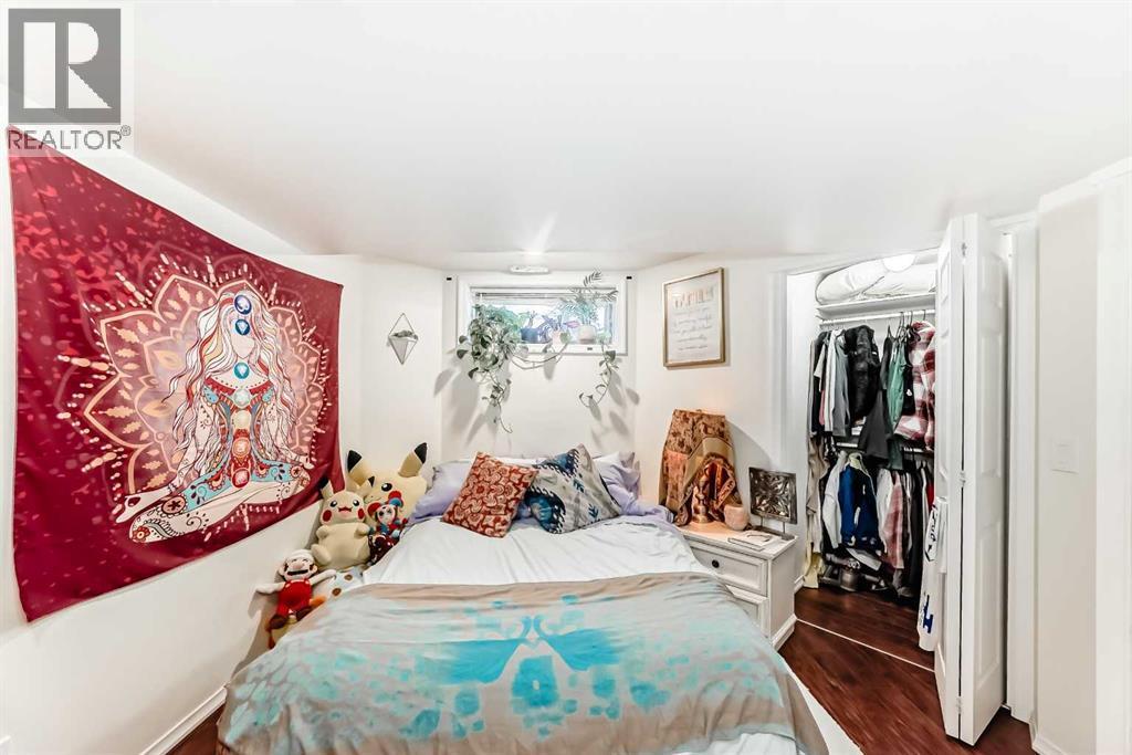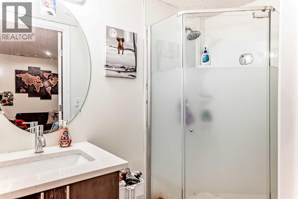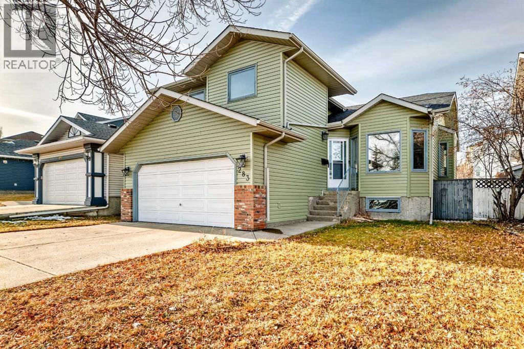 Beautifully upgraded 3+1 bedroom, two-storey split home ideally located across from MacEwan Park & Playfield, with transit conveniently right in front of the house! Step into a bright, open layout featuring vaulted ceilings and a seamless flow between the living and dining areas. The modern white kitchen showcases quartz countertops, stainless steel appliances, a glass tile backsplash, double sink, and a cozy breakfast nook that opens to a west-facing deck with aluminum railing. Enjoy the inviting family room with a brick wood-burning fireplace, plus a main-floor laundry area and 2-piece bath.Upstairs offers three comfortable bedrooms, including a primary bedroom with his-and-hers closets, a tub ensuite, and a renovated 4-piece main bath. The basement (illegal) includes an additional bedroom and living space, perfect for guests or extended family.Recent upgrades include new siding and roof (2025), quartz counters throughout, LED lighting, new flooring, fresh paint, stainless steel appliances, and a newer hot water tank. The flat backyard with lane access provides space for a trailer. Just steps to Nose Hill Park, schools, and express bus routes downtown. (id:6769