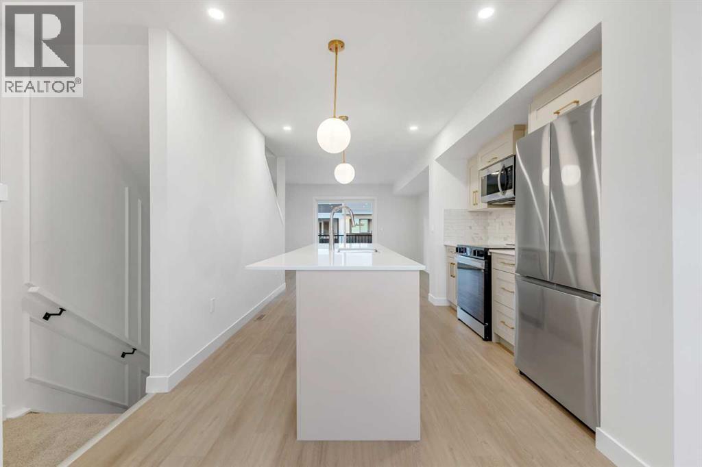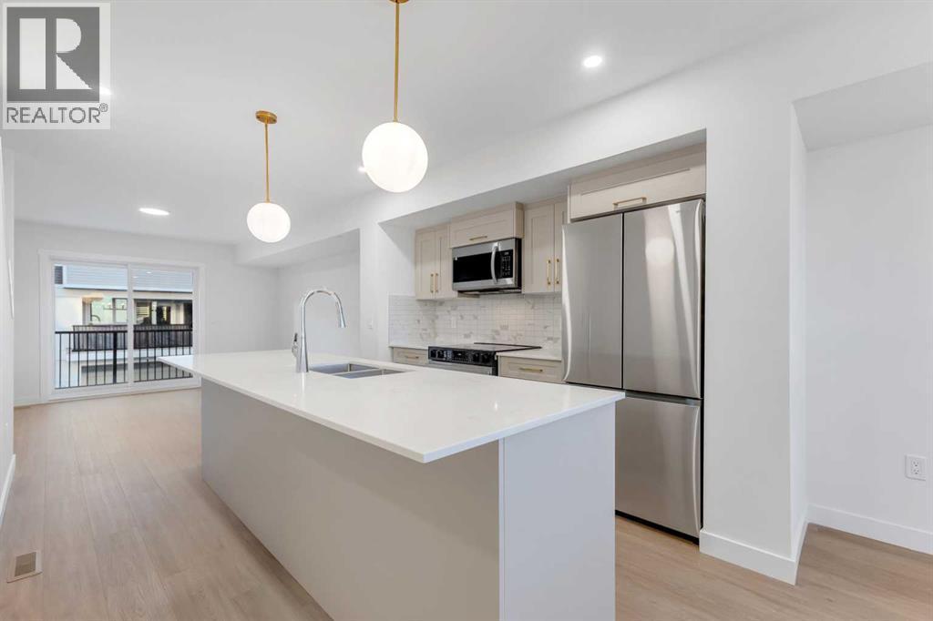 Welcome to your BRAND NEW 3-storey townhome in the vibrant community of Belmont, Calgary. This stunning home features 2 bedrooms, 2.5 bathrooms, and offers 1,358 sq.ft. of thoughtfully designed living space. The bright, open-concept main floor boasts a spacious living area with large windows, a modern kitchen with quartz countertops, full-height cabinetry, stainless steel appliances, and a cozy dining area that’s perfect for everyday living or entertaining. Step out onto your private balcony to enjoy your morning coffee or evening sunsets.Upstairs, you’ll find two generously sized bedrooms, each with its own full bathroom, plus a conveniently located upper-floor laundry. The entry level includes a tandem double attached garage, offering ample space for parking and storage.Located in Belmont, one of Calgary’s fastest-growing communities, surrounded by scenic pond walkways, playgrounds, and parks. Just steps from a future commercial plaza featuring a Tim Hortons, daycare, gas station, and a bus stand right in front of the complex.Enjoy quick access to Stoney Trail, Macleod Trail, and the future LRT extension, making commuting easy. Pet and rental friendly, this home is perfect for first-time buyers or investors seeking modern living, great value, and a thriving community lifestyle. (id:6769