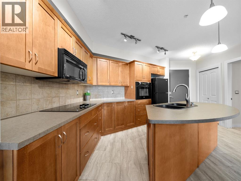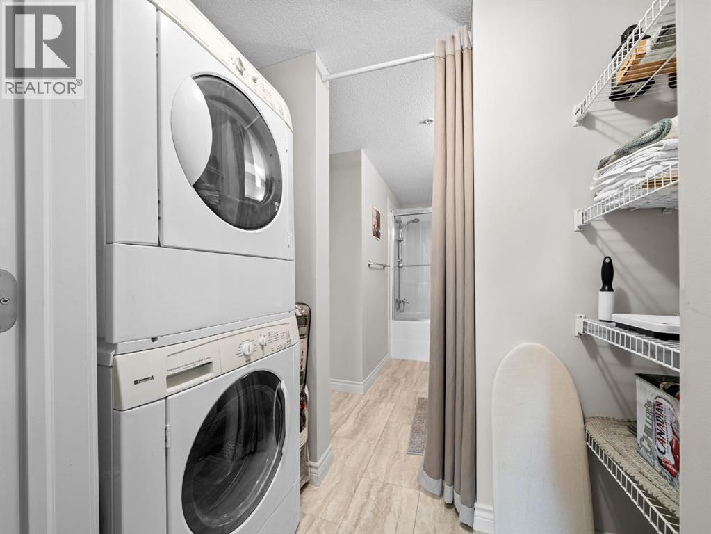 ***OPEN HOUSE SUNDAY, DEC 13, 1:00-3:00 PM***This stylish, FULLY FURNISHED, VALUE-PRICED one-bedroom condo offers MOVE-IN or RENT-READY convenience. Just steps from the University of Calgary, it features a spacious layout and comes COMPLETELY EQUIPPED for IMMEDIATE, COMFORTABLE LIVING — an ideal opportunity for students, professionals, or investors alike. The kitchen features sleek black appliances, including a cooktop stove and built-in BOSCH oven, along with ample cupboard and counter space and a functional island with an eating bar - perfect for both everyday living and entertaining. The adjacent dining area easily accommodates larger gatherings, whereas the built-in desk provides seamless convenience for work or study. The bright family room leads to a southeast facing private balcony with a glass railing, surrounded by mature trees and greenery — a peaceful, secluded outdoor space. The bright and spacious primary bedroom features a portable air conditioning unit (vented outside) and offers direct access to the 4-piece bathroom through a generous walk-through closet and in-suite laundry area with a linen closet. Additional features include a titled underground parking stall, secure bike storage and covered guest parking. Ideally located within walking distance to the University of Calgary, Brentwood and University LRT stations, University District, Market Mall, Brentwood Village, McMahon Stadium, and the Alberta Children’s and Foothills Hospitals, this condo is a smart investment and an equally ideal place to call home. (id:6769