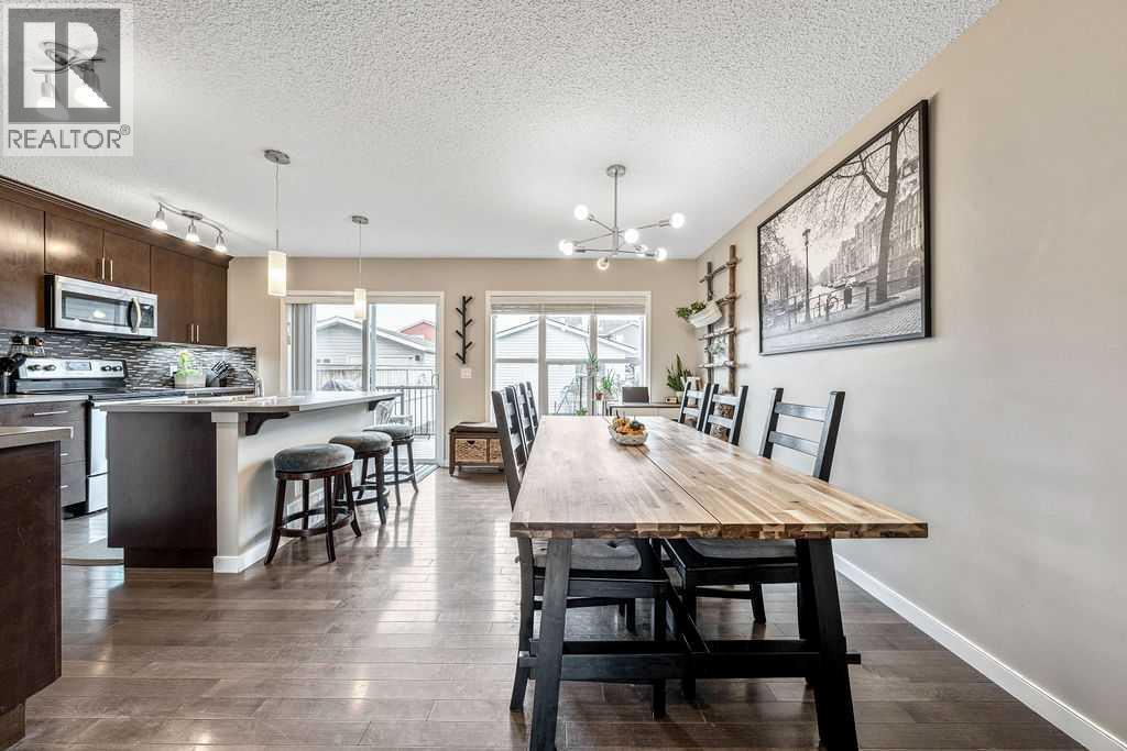 Welcome to this immaculate, air-conditioned 3-bedroom (4th if you count the partially finished basement), 3-bath home located across from a school and playground!Step inside to discover a bright, contemporary open-concept layout with large windows that fill the space with natural light. Beautiful hardwood floors flow seamlessly through the spacious living room, featuring a cozy three-sided fireplace, and into the kitchen and dining area.The modern kitchen offers stylish cabinetry, stainless steel appliances, ample storage, and a large center island — perfect for meal prep or entertaining guests. A convenient rear entrance and a half bath complete the main level.Upstairs, you’ll find three generous bedrooms, including a spacious primary suite with a walk-in closet and a private 4-piece ensuite. A second 4-piece bath serves the additional bedrooms.The basement has been professionally framed and wired to the drywall stage by a journeyman electrician (with permits). It features thoughtfully placed recessed lighting, outlets, and switches, plus egress windows and a 3-piece rough-in — offering an excellent opportunity to add value and create the lower level of your dreams.Outside, enjoy the 22’ x 20’ detached garage with access from a clean, paved laneway.Location highlights:•Steps away from a school, playground, and bus stop•Short stroll to two nearby schools and scenic ridge pathways for evening walks - A Fantastic Hall/ Rec Center including a splash park and outdoor rink•Just minutes to South Health Campus, Sobeys, and a variety of shopping and dining optionsPride of ownership is evident throughout — this home is move-in ready and waiting for you! Don’t miss your chance to make it yours. Book your showing today! (id:6769