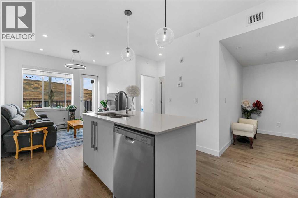Welcome home!! 2024 Build –Heated Underground Titled Parking + Storage Locker | Pet Friendly | 2 Bed + Den + 2 Bath | Pet Spa & Party Room Welcome to Wolf Willow, a vibrant new community where modern living meets natural beauty, nestled alongside the picturesque Bow River. This thoughtfully designed TOP floor unit offers the perfect blend of sophistication, comfort, and convenience, making it ideal for professionals and families alike. With easy access to major roads, schools, golfing and shopping, Wolf Willow provides a lifestyle that balances urban convenience with the tranquility of nature — whether you're exploring scenic trails, relaxing at the playgrounds, or taking a peaceful walk along the river. Step inside to high ceilings and a spacious foyer with a convenient front hall closet, leading to a versatile den — perfect for a home office, gym or creative space. The kitchen is a chef’s dream, featuring high-end stainless steel appliances, quartz countertops, and an abundance of full-height soft-close cabinetry, including a pantry for extra storage. The kitchen island is the perfect spot to pull up a stool for breakfast or host an evening with friends/family. The open-concept living area with high end vinyl plank flooring is designed for entertaining, with bedrooms strategically placed on opposite sides for added privacy. The master suite is a serene retreat, complete with a generous walk-in closet and a beautifully finished three-piece ensuite. The well-sized second bedroom is located near the elegant four-piece bathroom and full size in-suite laundry for ultimate convenience. Step onto your private west balcony, perfect for morning coffee or simply soaking in the fresh air. This top floor unit leads to extra privacy and views in every direction. Wolf Willow is a brand new southeast family-friendly community designed for nature lovers! With an off-leash park, Bow River walking trails, and fish creek park mere minutes away, its the perfect blend of amenities a nd nature. Nearby schools are covered with Public & Catholic, Christian Academy and Private all within 10-18 minutes. You’re 5 min to Stoney Trail & Macleod Trail, 13 min to LRT station & just steps to a bus stop for an easy commute. Everyday amenities like groceries, fitness centres and the movie theatre all within a ten minute drive. Book your showing today, and come see why we are all raving about this new SE community. (id:6769