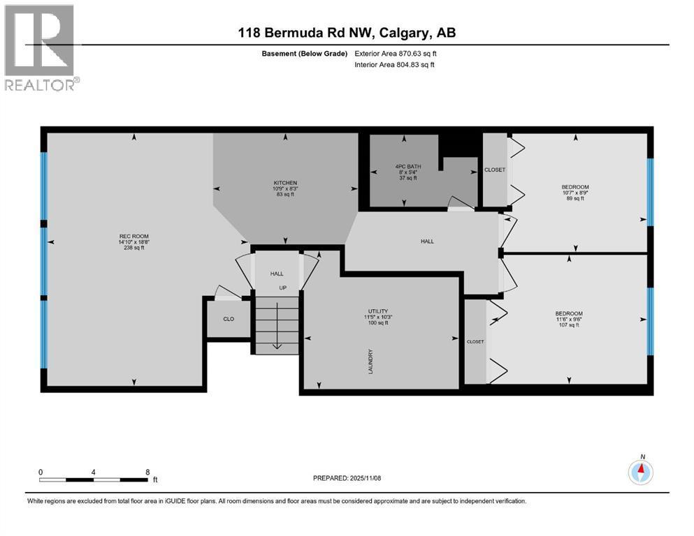 | Bedroom | Basement | 8.75 Ft x 10.58 Ft |