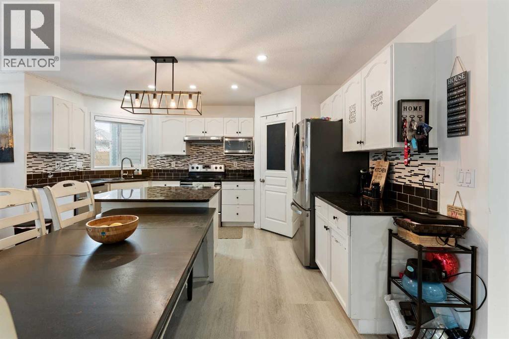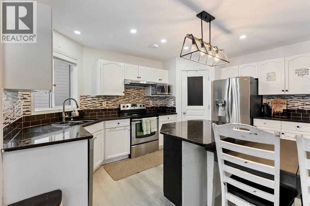 Welcome into this extremely well maintained home with tons of features! The dropped foyer is warm and inviting and flows seamlessly into the open concept main floor. The large living room includes gas fireplace with granite hearth and upgraded maple mantle. The kitchen has granite countertops, stainless steel appliances and an island eating bar for two. Mornings are sunny in the bright breakfast nook with a view to the fully landscaped backyard. A mud room / laundry room combo and half bath complete the main floor. Upstairs you will find two well sized bedrooms and a main bath. The master suite consists of a walk in closet and bathroom with generous soaker tub and separate shower. The walk-up basement is fully developed with a den, bathroom with shower, extra bedroom and large family room featuring another cozy gas fireplace. There is also a central air conditioning unit for the hot summer months. So much room for such a great price, check it out today! (id:6769
