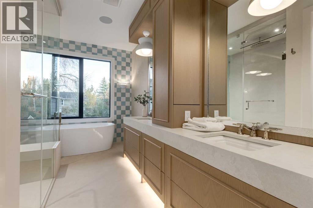 OPEN HOUSE – Dec 14, 2:30 - 4:30 PM!! Welcome to 412 40 Avenue SW, a rare opportunity to own a brand new home by Platinum Build Homes in prestigious East Elbow Park. With nearly 4,450 sq. ft. of thoughtfully designed living space, this timeless home blends classic architecture with luxurious modern details. Situated on a mature, tree-lined street with unobstructed front views and steps from the Elbow River, the setting offers both tranquility and a true inner-city lifestyle.A beautiful stone exterior, heated driveway, and grand front steps create exceptional curb appeal. Inside, a soaring entryway welcomes you to a bright and open main floor featuring a private office with custom millwork, and an elegant kitchen and family area with built-in cabinetry and top-of-the-line Wolf and Miele appliances. Upstairs, the primary suite features a sunny south-facing balcony, a spa-like ensuite, and a walk-in closet. Two additional bedrooms each have their own ensuite and walk-in closet, along with a laundry room and a bonus room for extra flexibility. The lower level is built for entertaining and relaxation, featuring a stunning bar with a glass wine room, radiant-heated epoxy floors, a large recreation room, home gym, and two additional bedrooms with a full bath. With so many thoughtful features and exquisite details throughout, this home is truly best experienced in person.. Book your private showing today. (id:6769