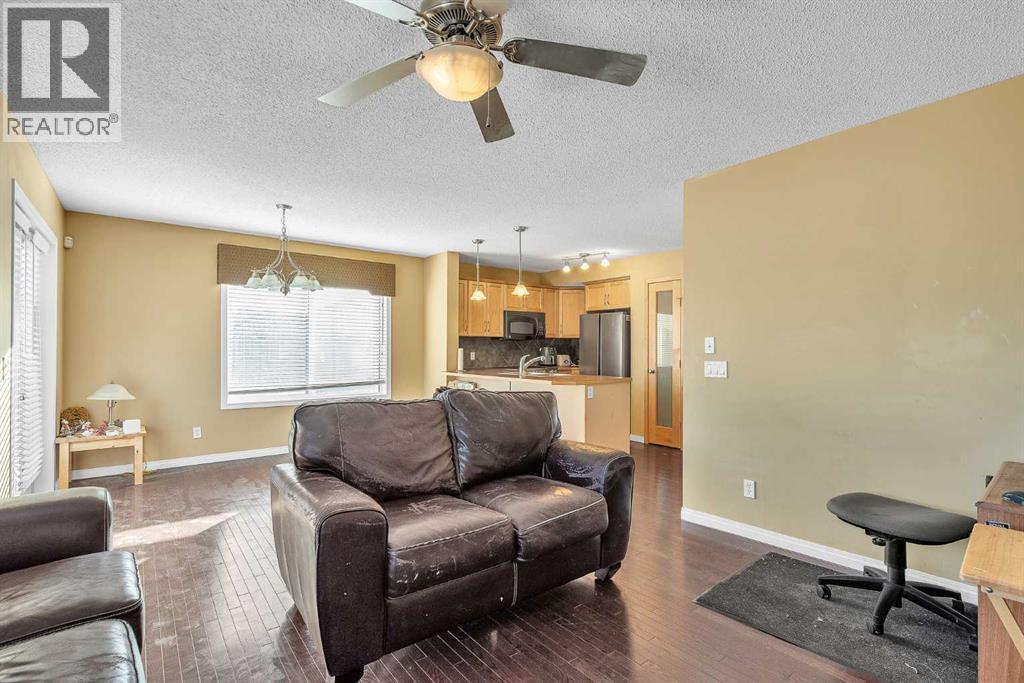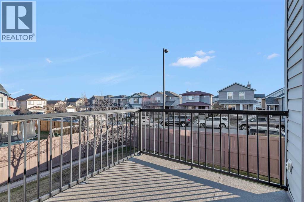 This remarkable former show home truly checks ALL the boxes — style, comfort, and value!As you arrive at this beautifully maintained complex, you’ll immediately notice the pride of ownership throughout. The property management team takes exceptional care of the community — from the well-kept roads and lush lawns to the mature trees and pristine building exteriors.Step inside and you’ll be welcomed by a bright, open-concept floor plan perfect for family living and entertaining. The dining area easily accommodates large gatherings, while the private balcony overlooking a peaceful greenbelt offers the ideal spot for morning coffee or evening relaxation. The living room provides a warm and inviting space for everyone to unwind.To your right upon entry, you’ll find a versatile office or den, perfect for working from home. A pristine half-bath nearby ensures guests feel right at home.Upstairs, the primary suite is a true retreat, featuring a walk-in closet and a brilliant ensuite bathroom. Two additional bedrooms and a 4-piece main bath complete the upper level. Enjoy brand-new laminate flooring upstairs, new carpet on the stairway, and all new appliances — refrigerator, stove, dishwasher, and washer/dryer — throughout the home!The walkout basement offers incredible flexibility, with its own entry leading to a lush green space. Bright and airy, this lower level can serve as a separate living area, rec room, or guest suite — the possibilities are endless. Step out to the third patio area and relax in your own sun-filled oasis.An attached garage with a new door opener provides secure parking and additional storage.Located in the highly sought-after Sagewood community of Airdrie, this home offers the perfect blend of tranquility and convenience. You’ll love the scenic pathways, reservoirs, creeks, and parks, all just steps away. Plus, enjoy easy access to shopping, schools, golf, and major routes:•15 minutes to CrossIron Mills Mall•Less than 20 minutes to YYC Airp ort•5 minutes to Woodside Golf Course•A short stroll to C.W. Perry SchoolDon’t miss your chance to own this stunning home — book your private showing today before it’s gone! (id:6769