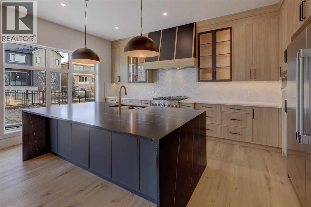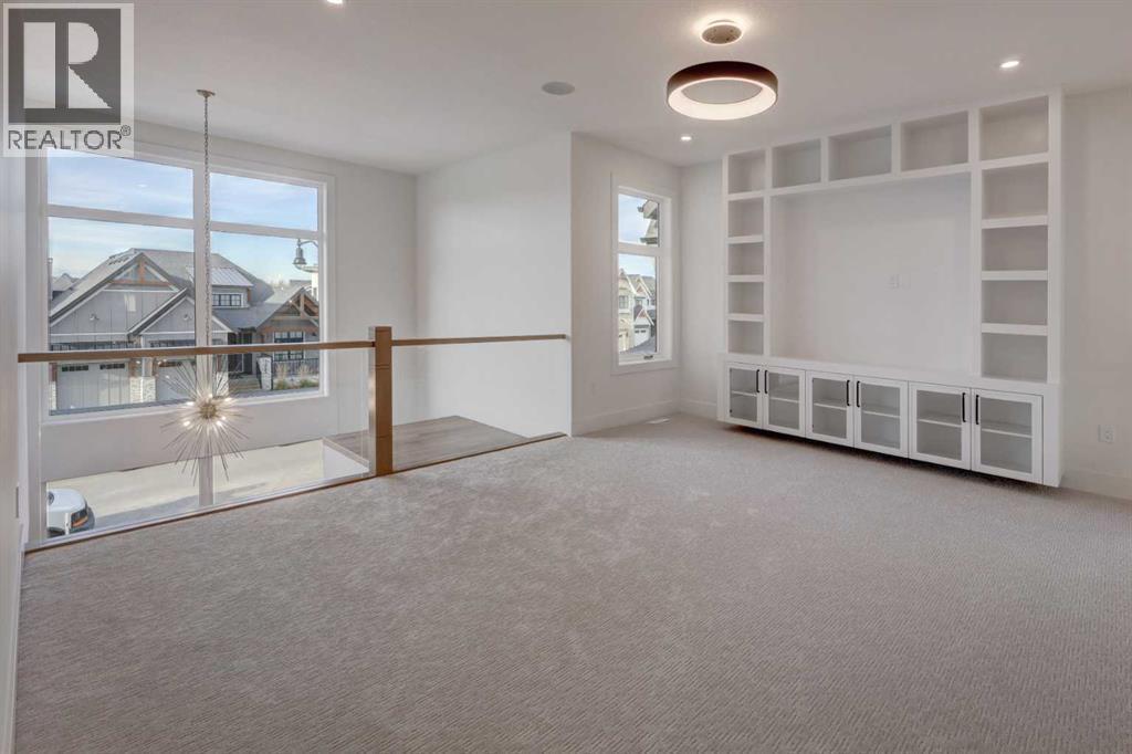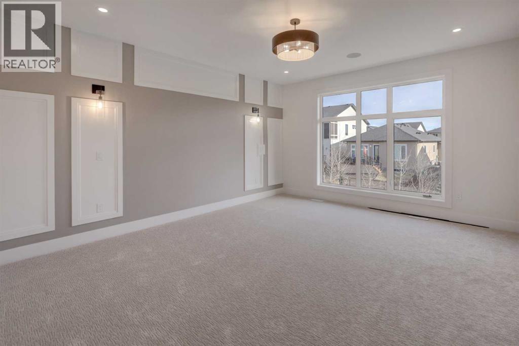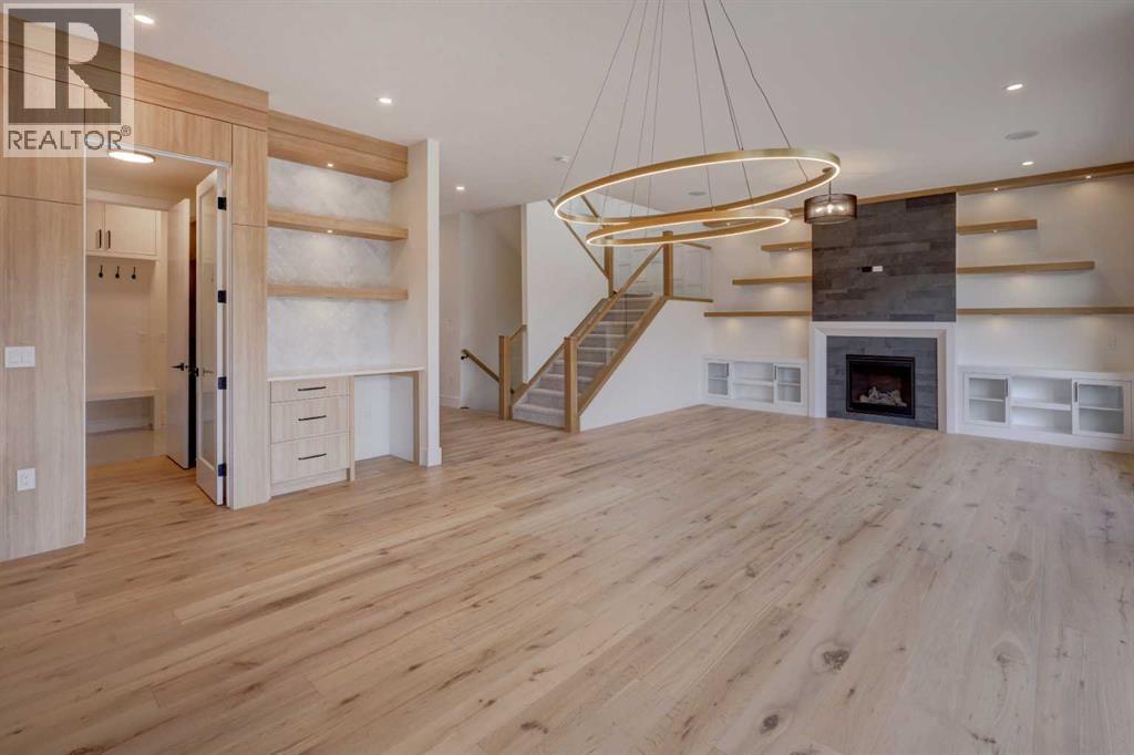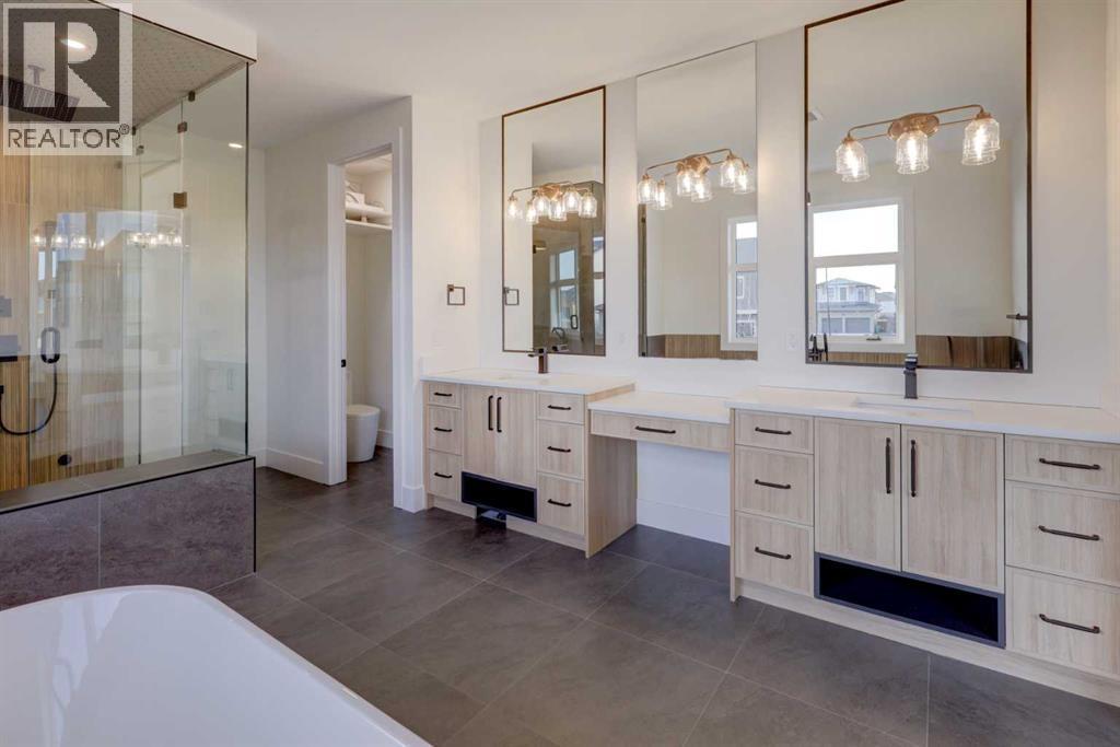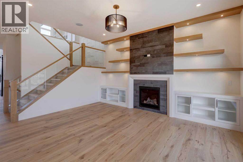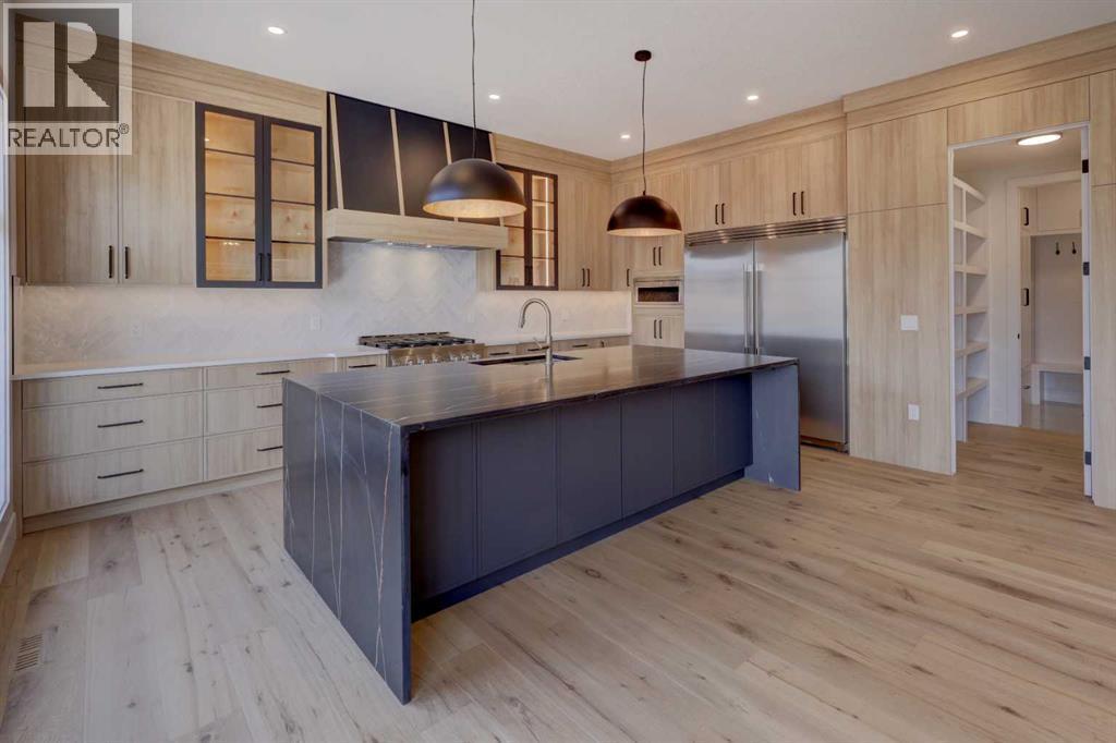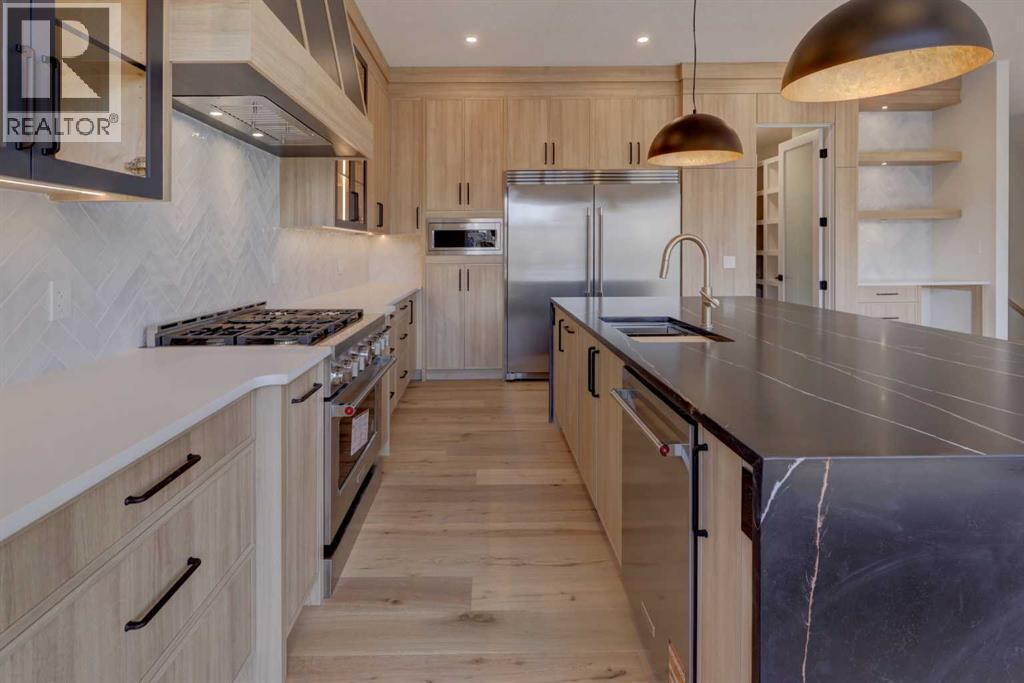 Welcome to this stunning home located in the highly sought-after community of Coopers Crossing! Boasting exceptional curb appeal and backing onto beautiful green space, this home is ideally situated close to schools with convenient access to major roads.The main floor offers 10’ ceiling, engineered hardwood flooring, a spacious and inviting entryway, an office with glass features and custom finishes, and a large living room featuring a cozy gas fireplace and built-in shelving. The elegant dining area opens onto a generous sized deck with bbq gas line, perfect for entertaining. The gourmet kitchen is a chefs dream, complete with a waterfall island, built-in stainless steel appliances, quartz countertops, and a walk-through pantry. You will also find a large mudroom and a convenient powder room on this level.Upstairs, you are welcomed by a cozy loft area with custom built book shelf and a thoughtfully designed laundry room with a sink and lots of storage space. The luxurious primary suite includes a spacious walk-in closet and a spa-inspired ensuite with a custom walk-in steam shower, in floor heating, dual vanities and a freestanding tub. There are three additional generously sized bedrooms, each with custom-built closet shelving. One bedroom features its own ensuite, while a well-appointed main bathroom serves the other two.The fully finished basement adds even more living space, offering an additional bedroom, full bathroom, and a large recreation room complete with a wet bar—perfect for hosting guests.Throughout the home, you will find elegant lighting, custom woodwork and large windows that flood the space with natural light. The oversized triple tandem garage is insulated, finished to paint grade with texture ceiling and features high ceilings designed to accommodate a car lift, offering plenty of room for vehicles and storage.This exceptional home is truly a must-see! (id:6769